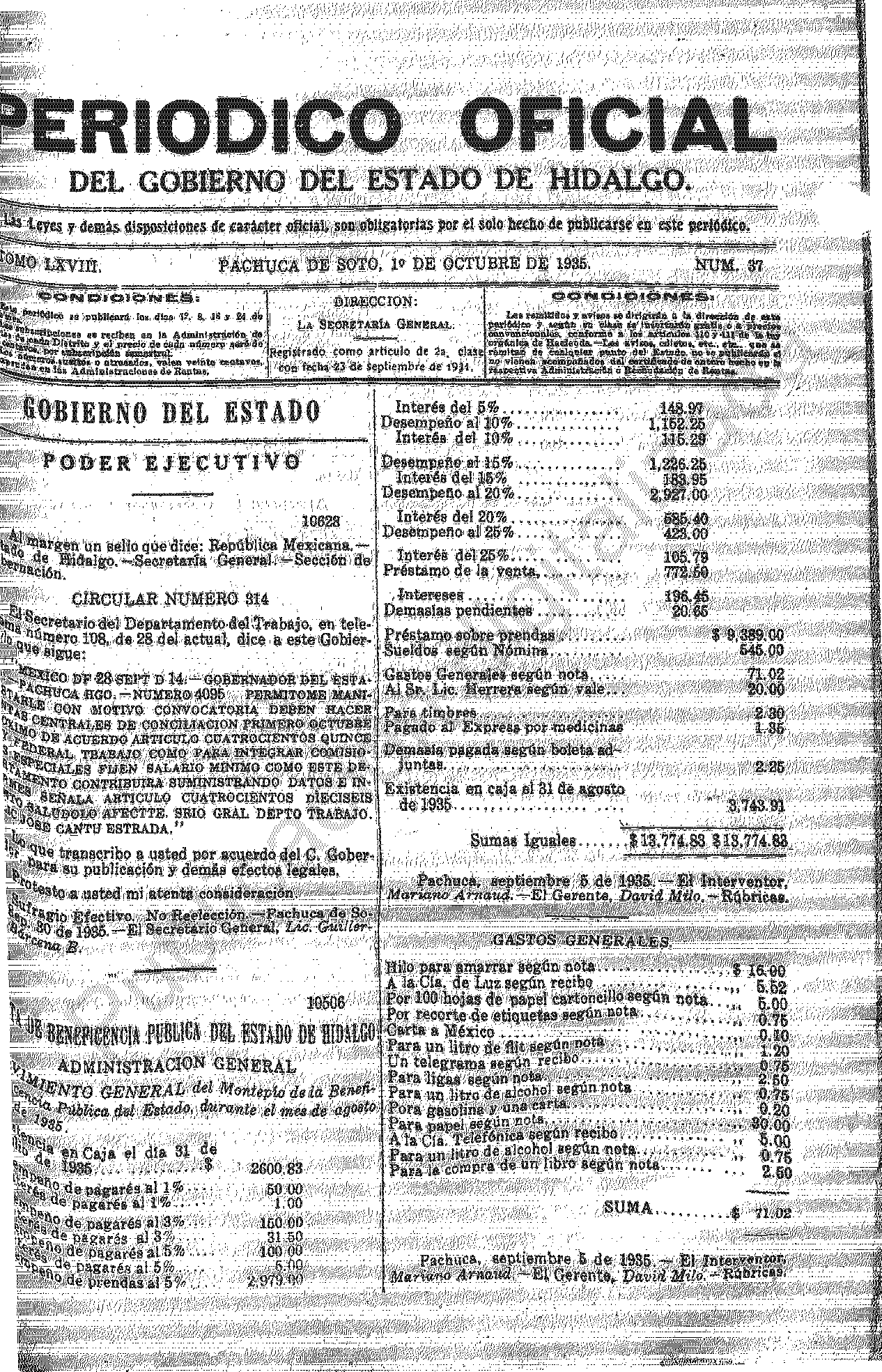 Descargar Periódico Oficial Ordinario 0 del 01 de octubre de 1935