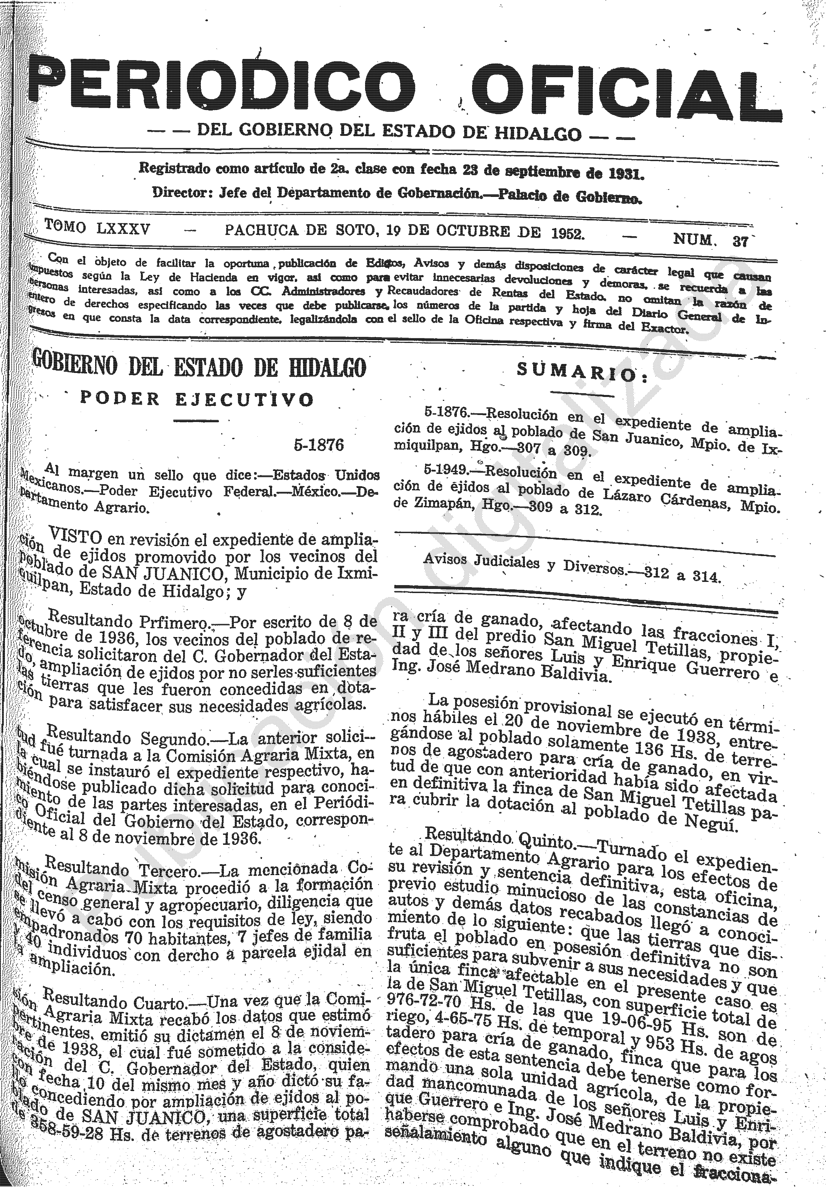 Descargar Periódico Oficial Ordinario 0 del 01 de octubre de 1952