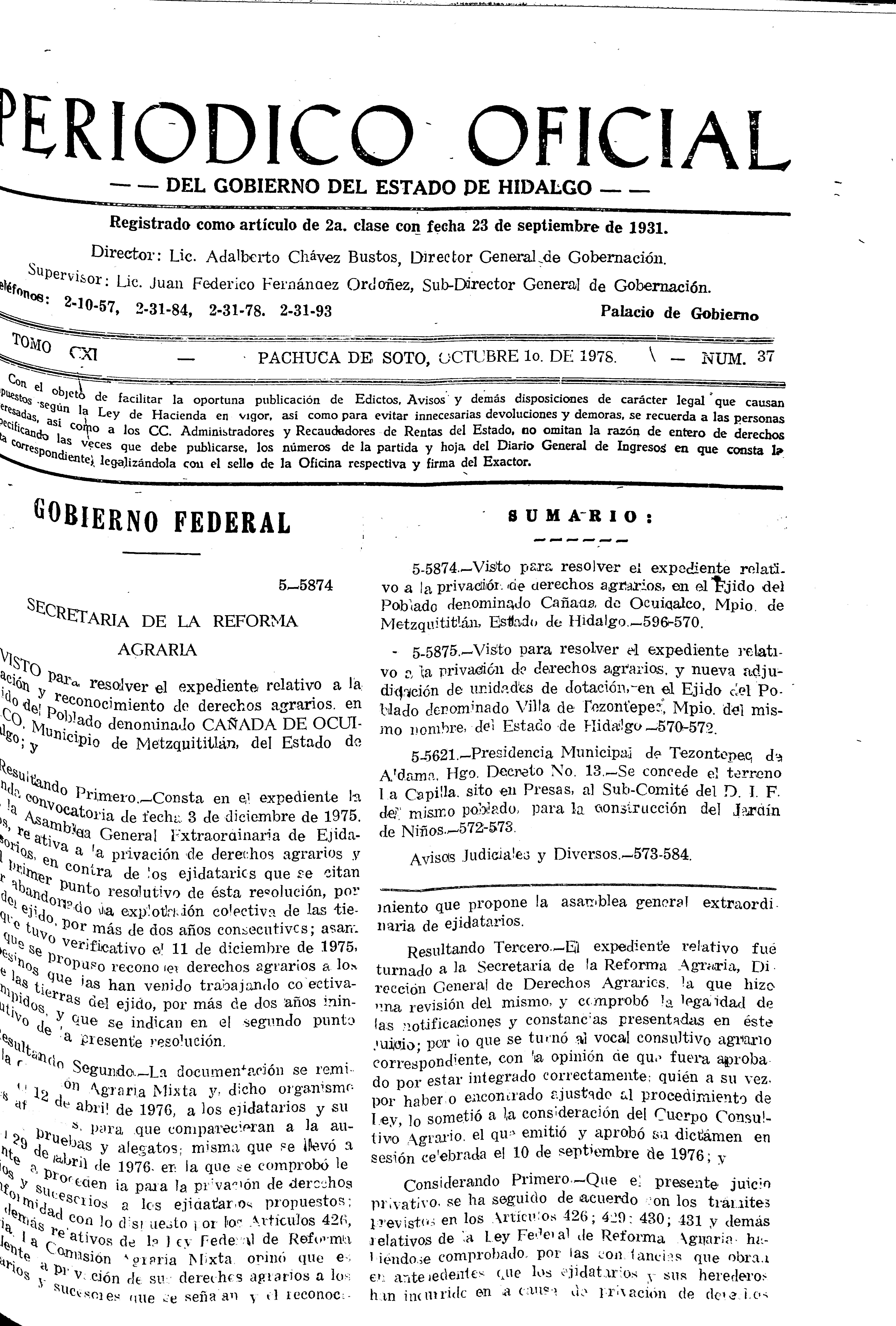 Descargar Periódico Oficial Ordinario 0 del 01 de octubre de 1978