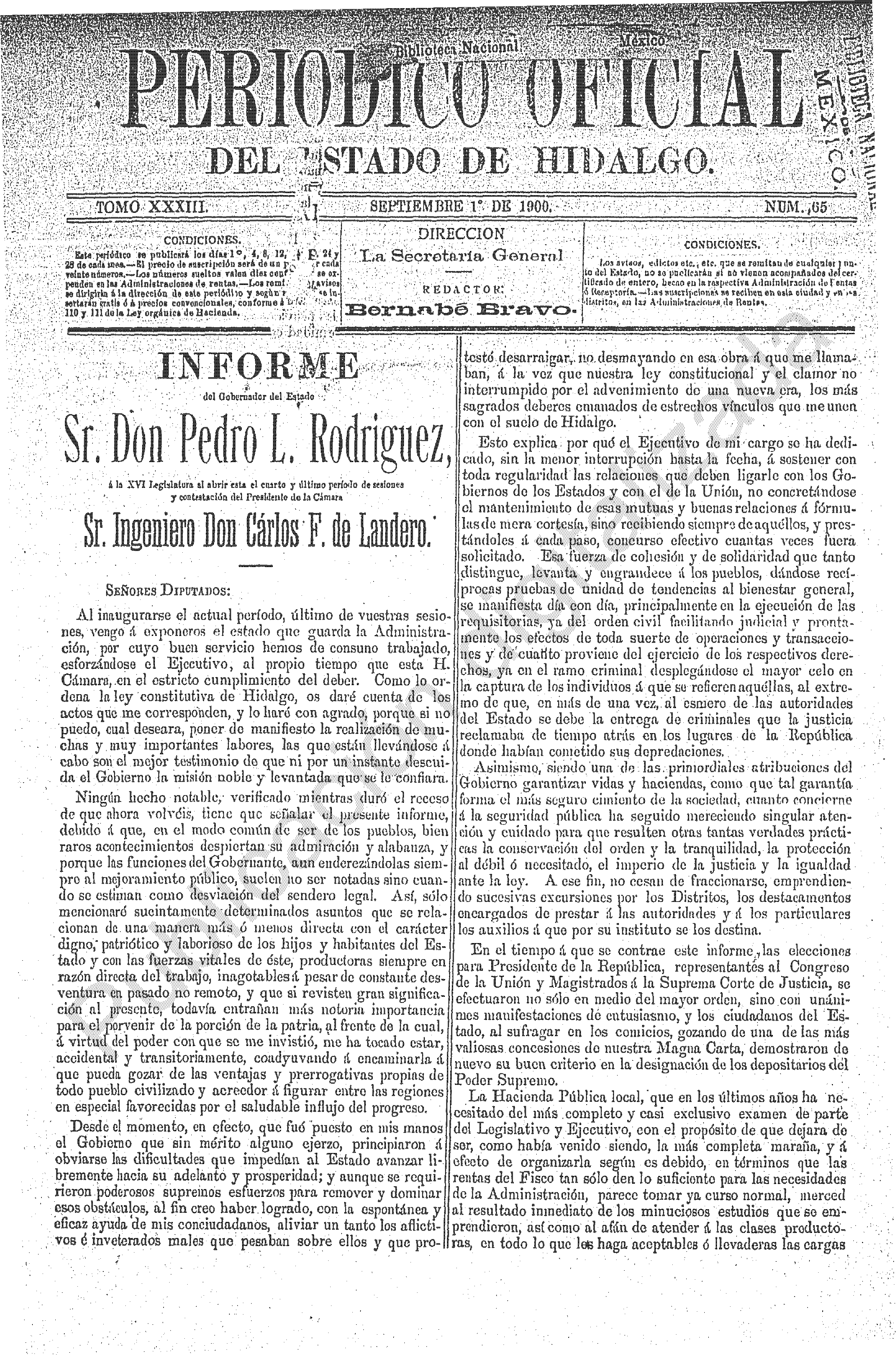 • Informe del Gobernador del Estado, Sr. Don Pedro L. Rodríguez.