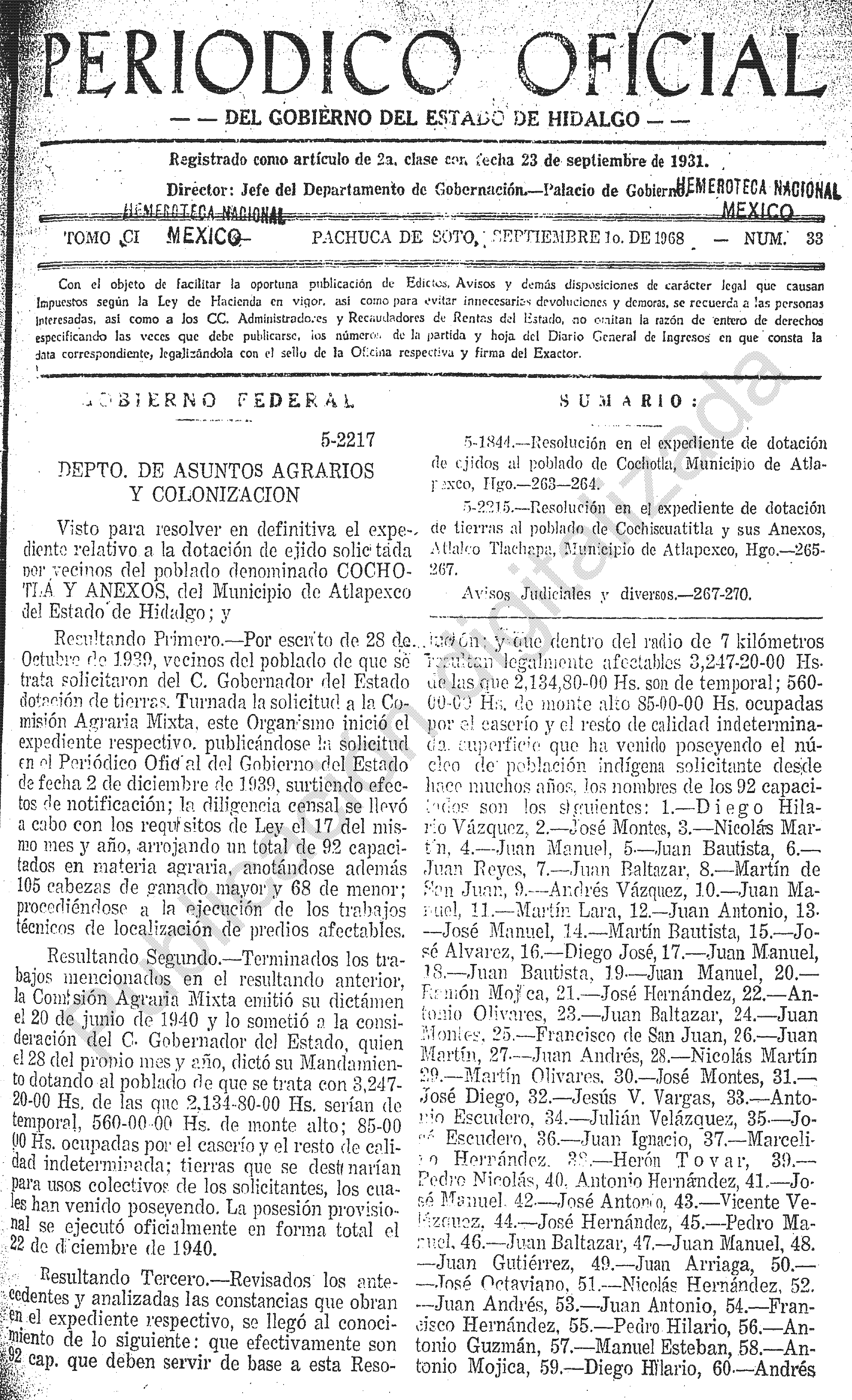 Descargar Periódico Oficial Ordinario 0 del 01 de septiembre de 1968