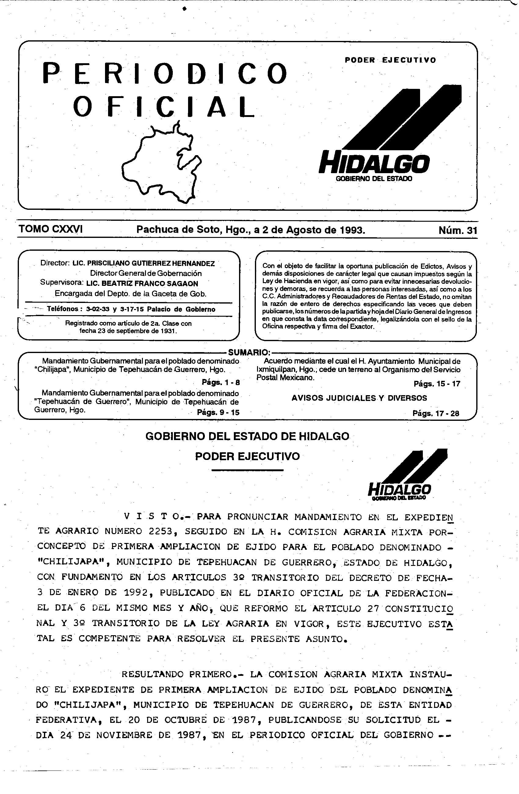 Descargar Periódico Oficial Ordinario 0 del 02 de agosto de 1993