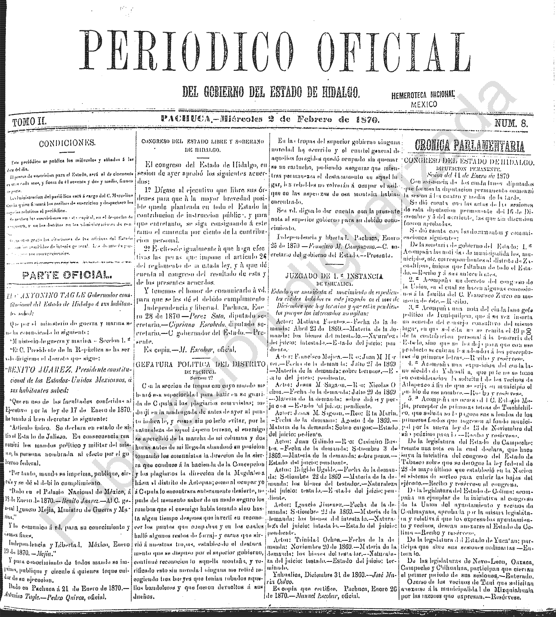 Descargar Periódico Oficial Ordinario 0 del 02 de febrero de 1870El portal web del Periódico Oficial del Estado de hidalgo es el único medio de difusión oficial del Gobierno del Estado de Hidalgo