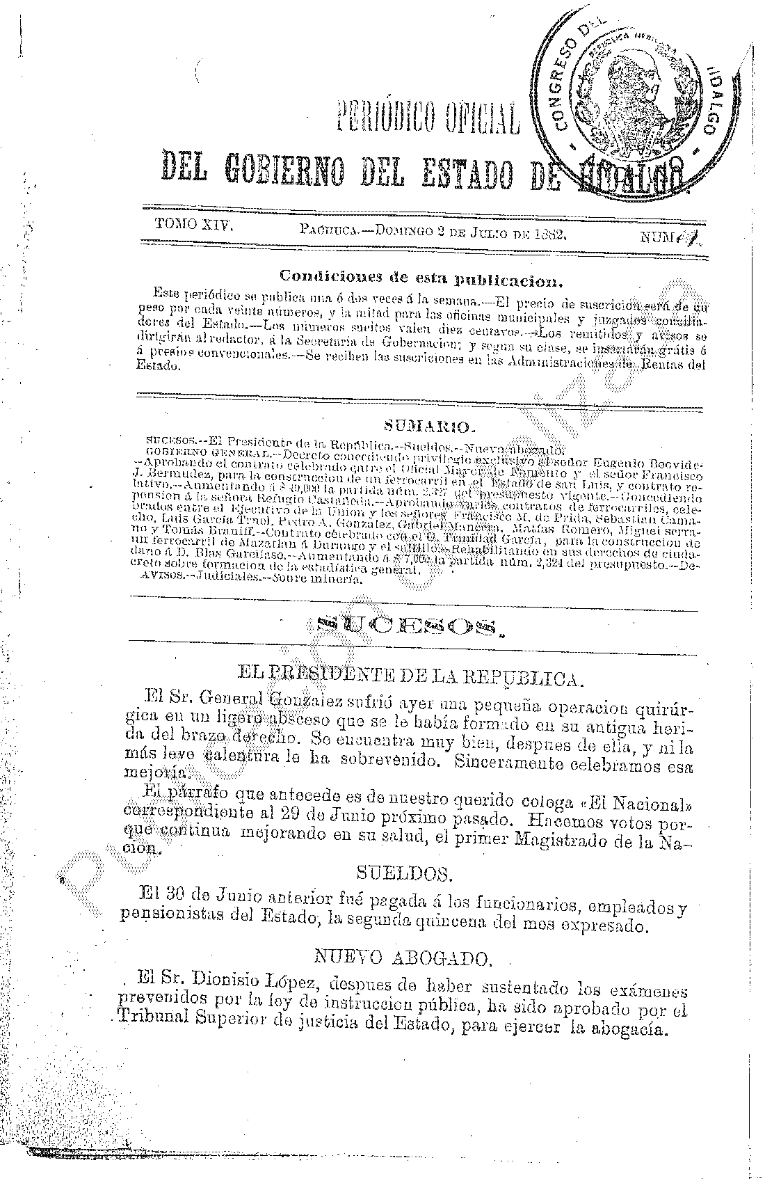 Descargar Periódico Oficial Ordinario 0 del 02 de julio de 1882El portal web del Periódico Oficial del Estado de hidalgo es el único medio de difusión oficial del Gobierno del Estado de Hidalgo