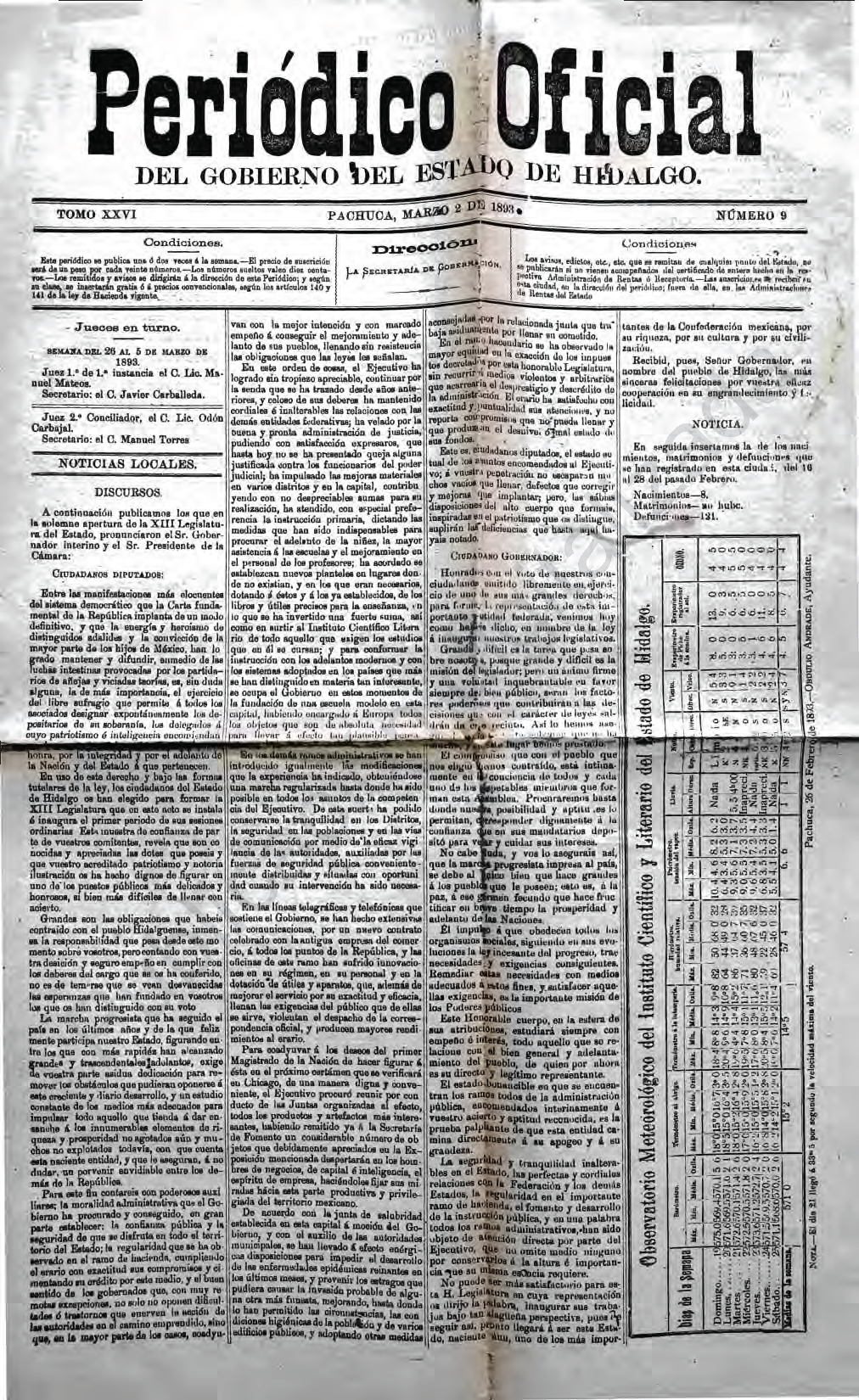 Descargar Periódico Oficial Ordinario 0 del 02 de marzo de 1893Tamaño 1,011.81 KB