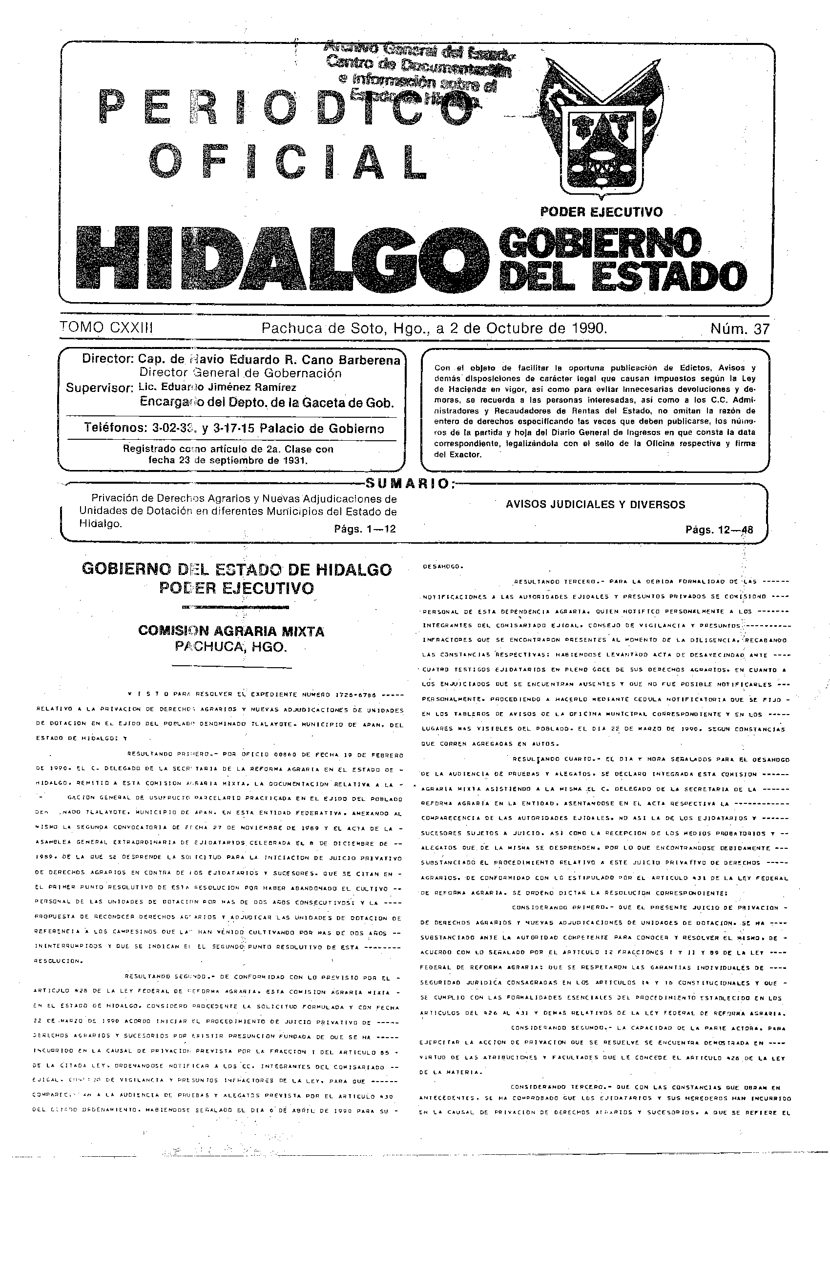 Periódico Oficial Ordinario 0 del 02 de octubre de 1990
