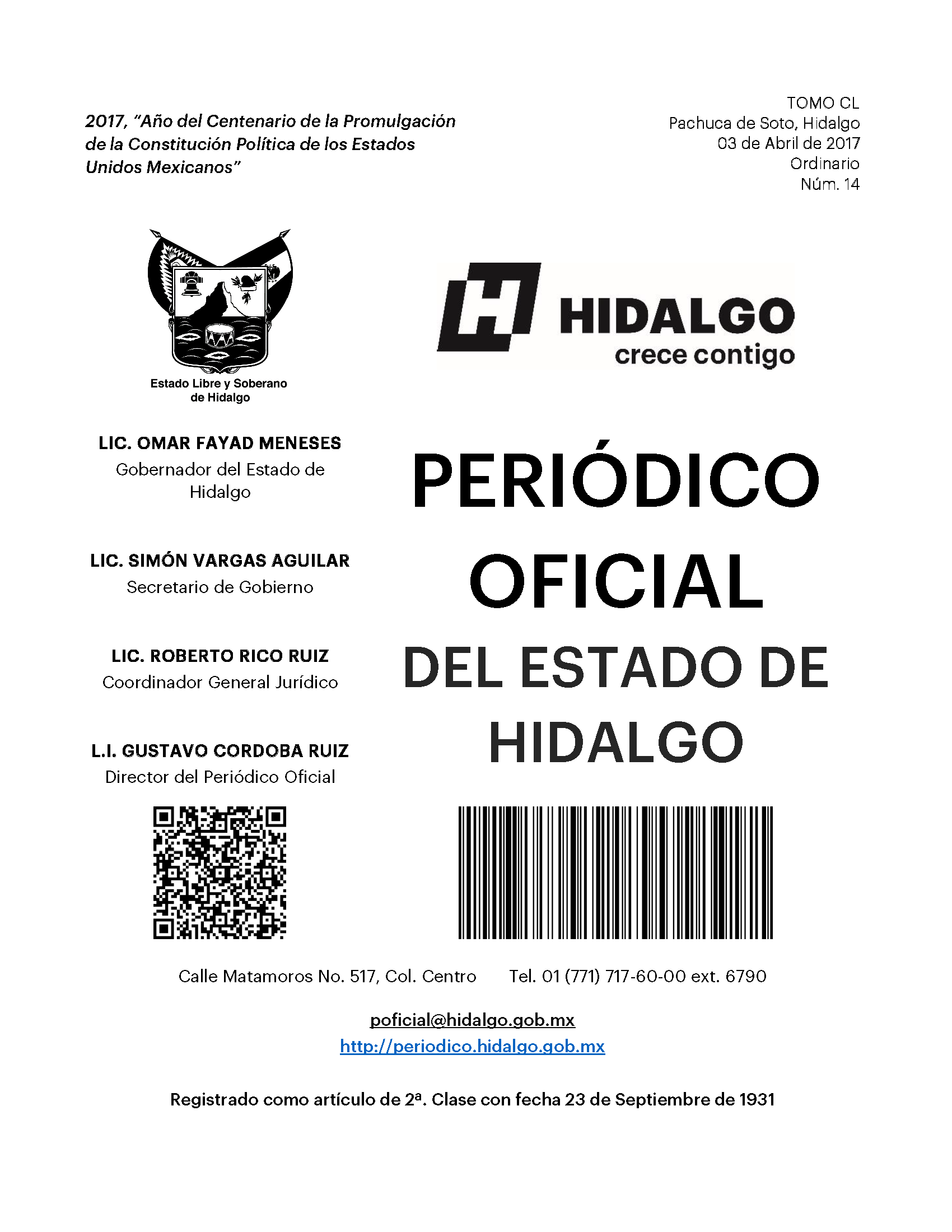 El portal web del Periódico Oficial del Estado de hidalgo es el único medio de difusión oficial del Gobierno del Estado de Hidalgo