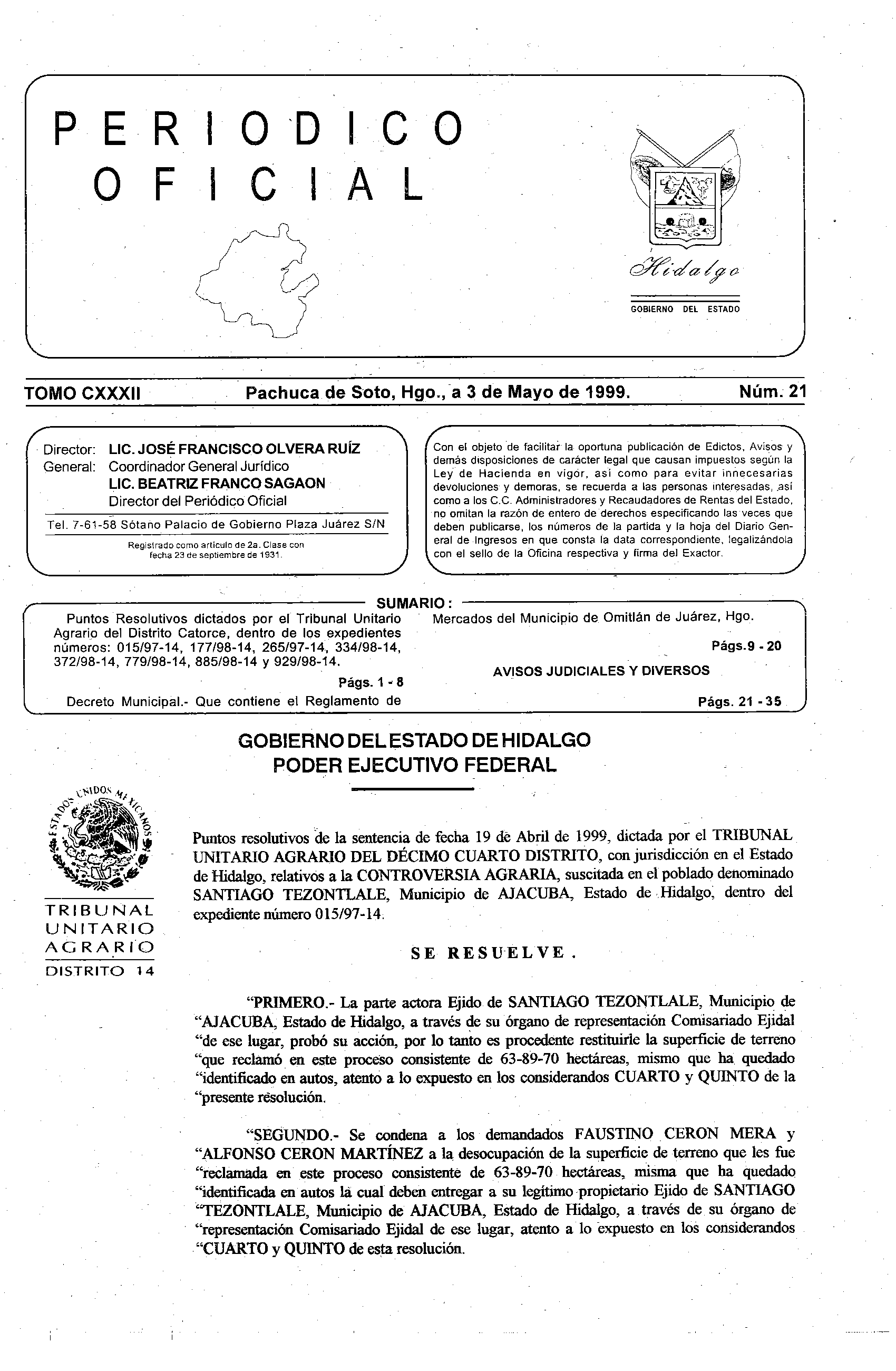 Descargar Periódico Oficial Ordinario 0 del 03 de mayo de 1999