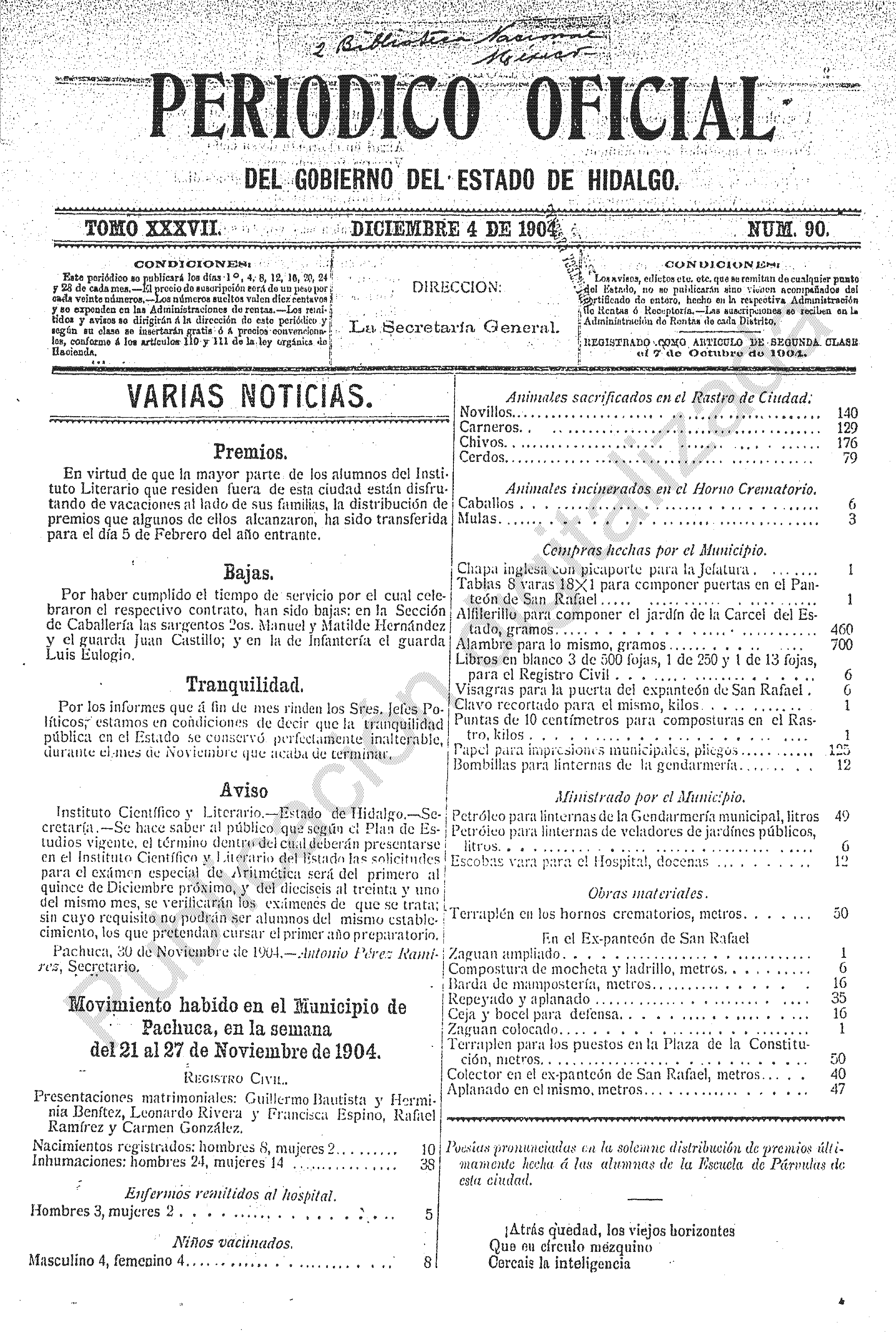 Descargar Periódico Oficial Ordinario 0 del 04 de diciembre de 1904Tamaño 1.30 MB