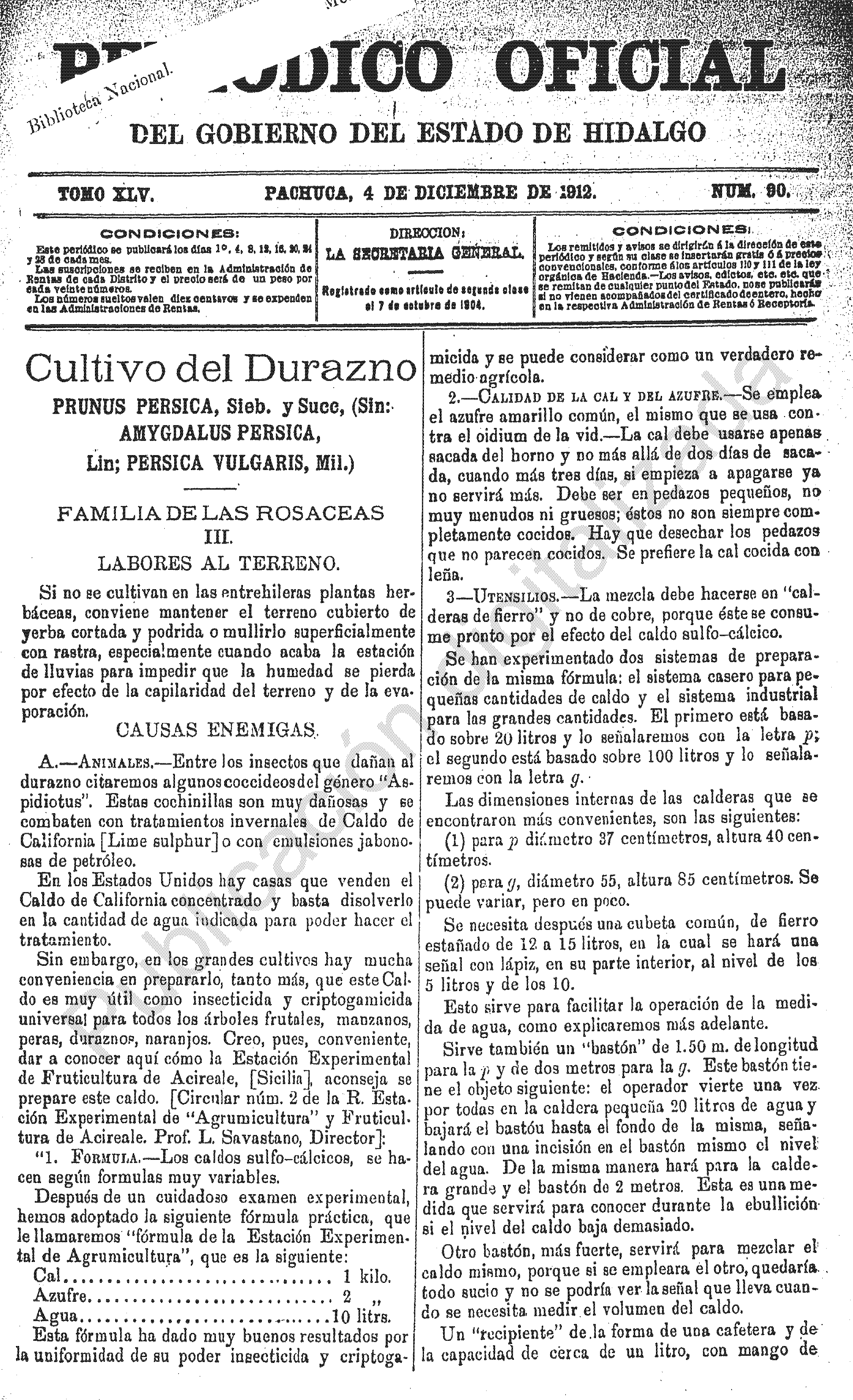 Descargar Periódico Oficial ordinario 0 del 04 de diciembre de 1912Tamaño 871.65 KB