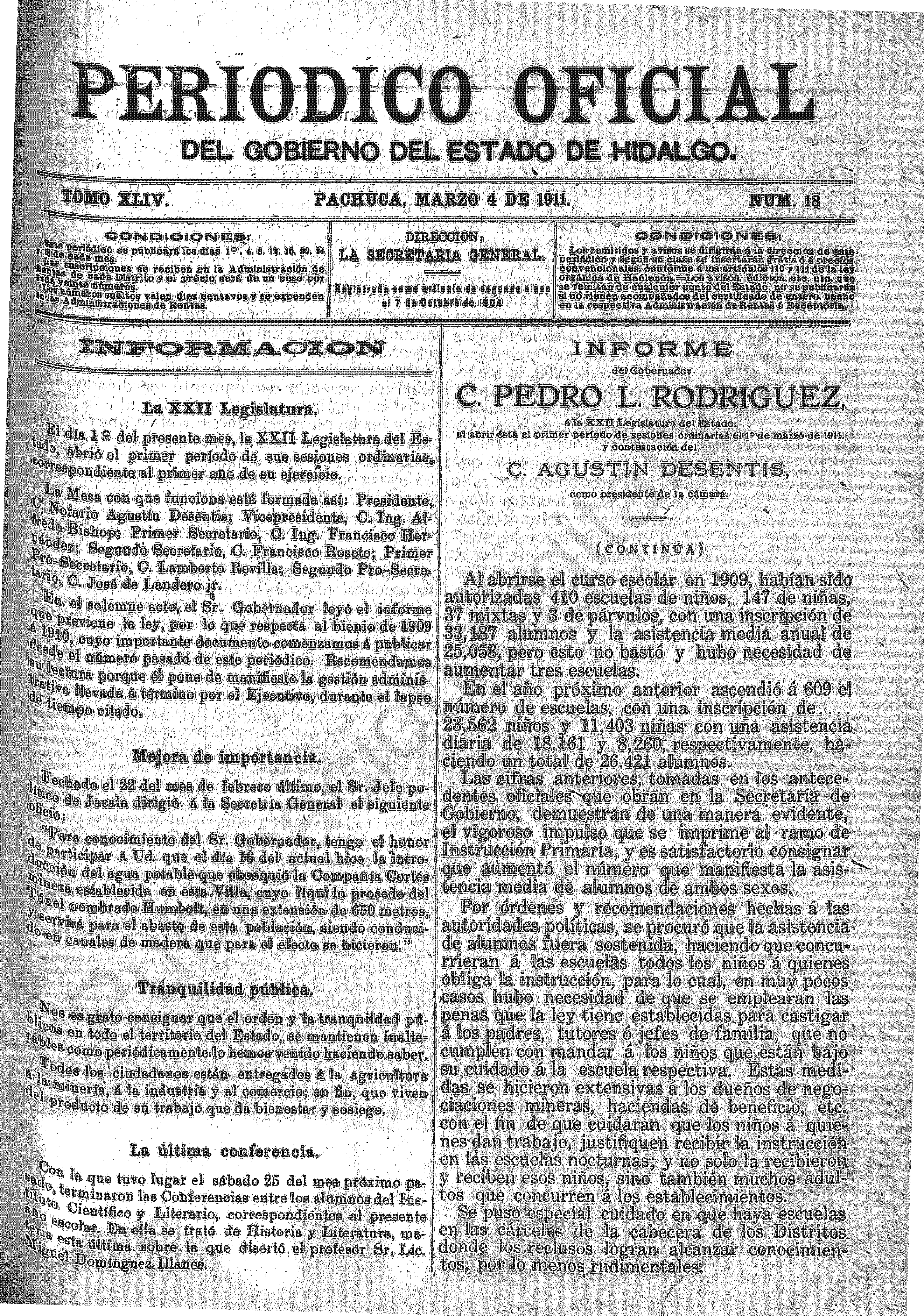 Descargar Periódico Oficial Ordinario 0 del 04 de marzo de 1911Tamaño 3.45 MB