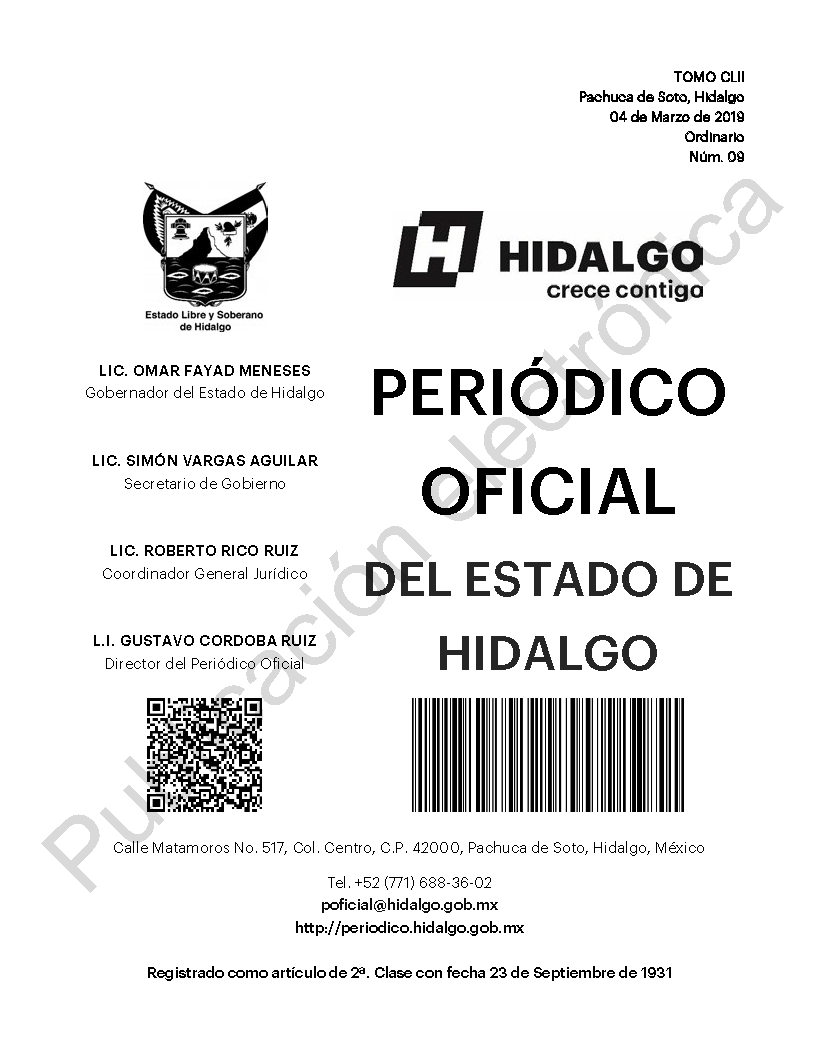 El portal web del Periódico Oficial del Estado de hidalgo es el único medio de difusión oficial del Gobierno del Estado de Hidalgo