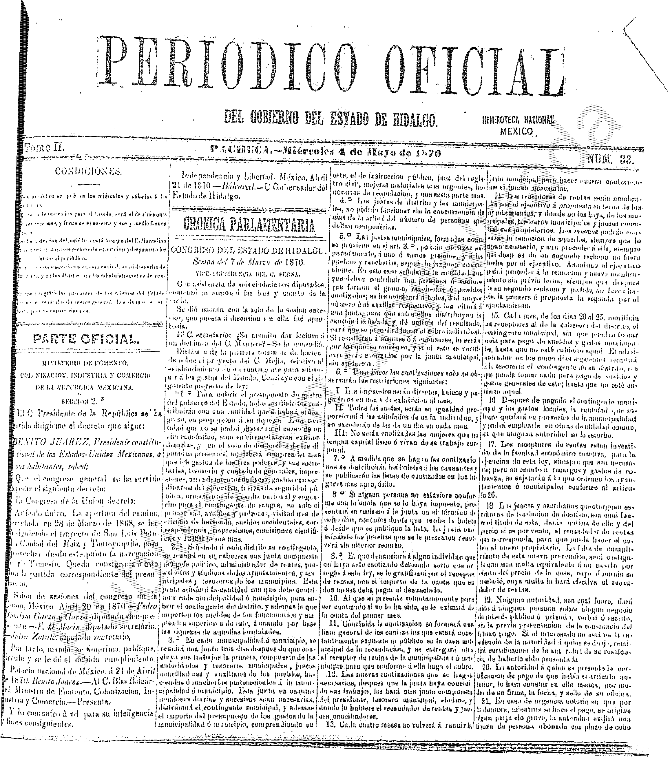 Descargar Periódico Oficial Ordinario 0 del 04 de mayo de 1870El portal web del Periódico Oficial del Estado de hidalgo es el único medio de difusión oficial del Gobierno del Estado de Hidalgo