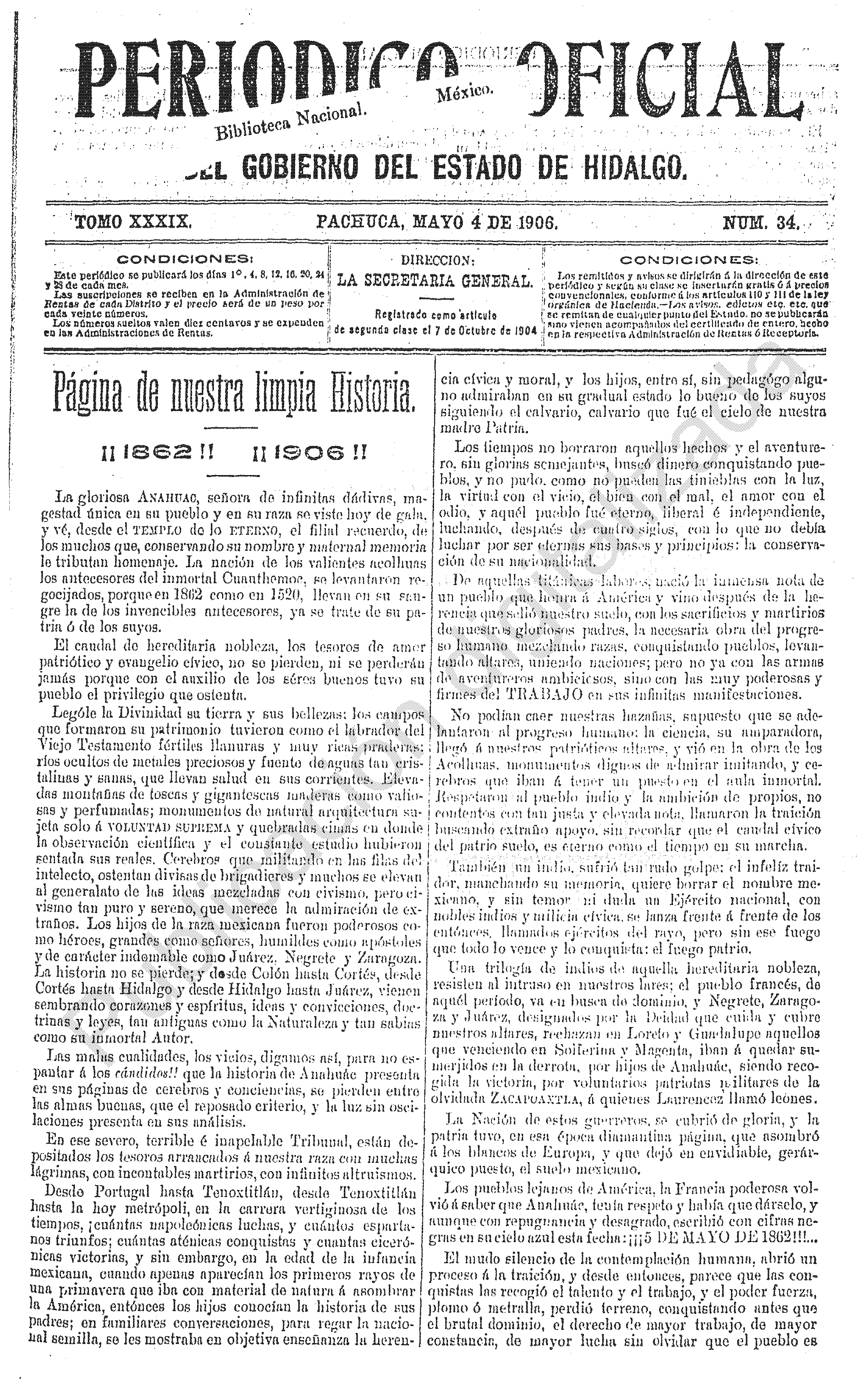 Descargar Periódico Oficial Ordinario 0 del 04 de mayo de 1906
