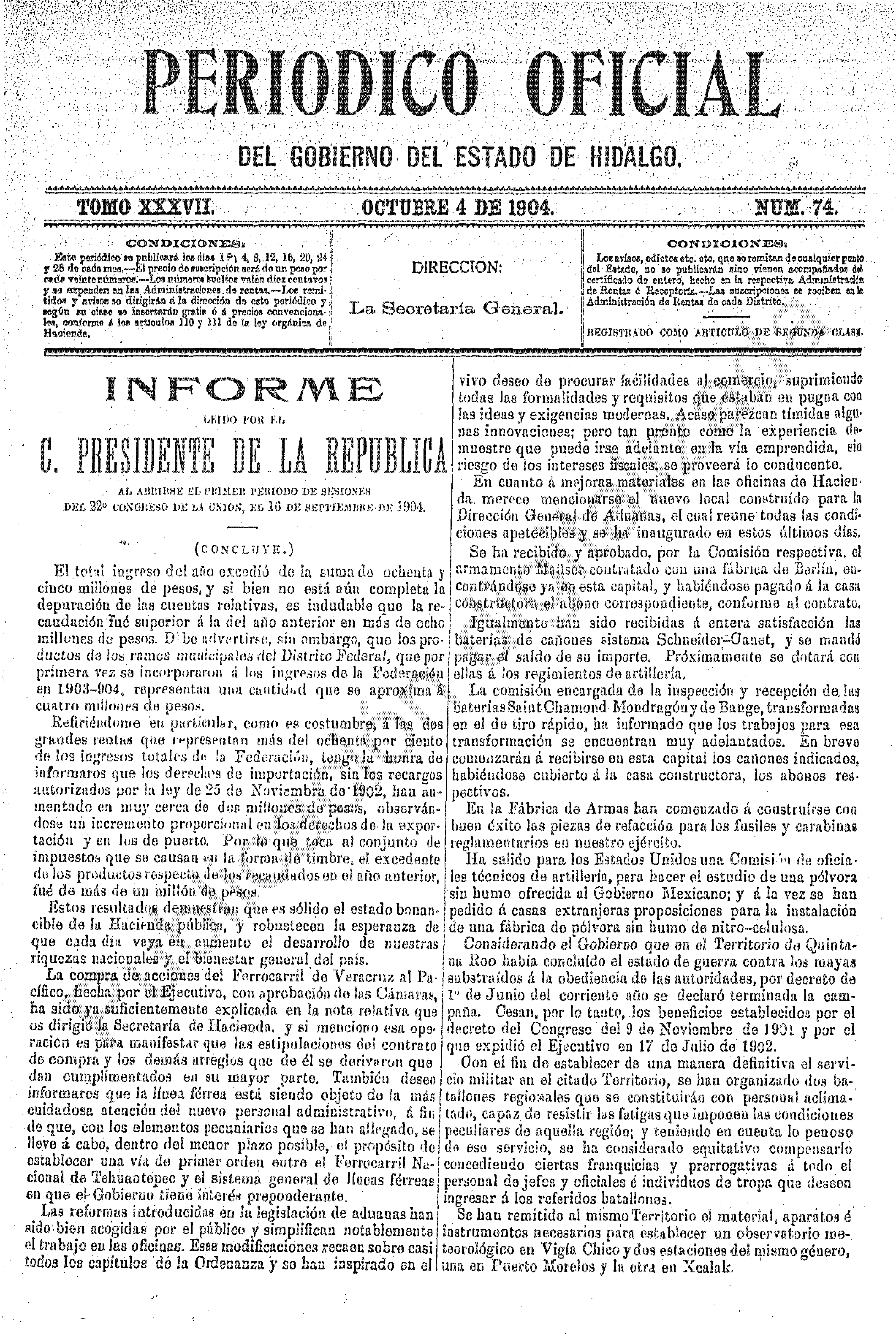 Periódico Oficial Ordinario 0 del 04 de octubre de 1904