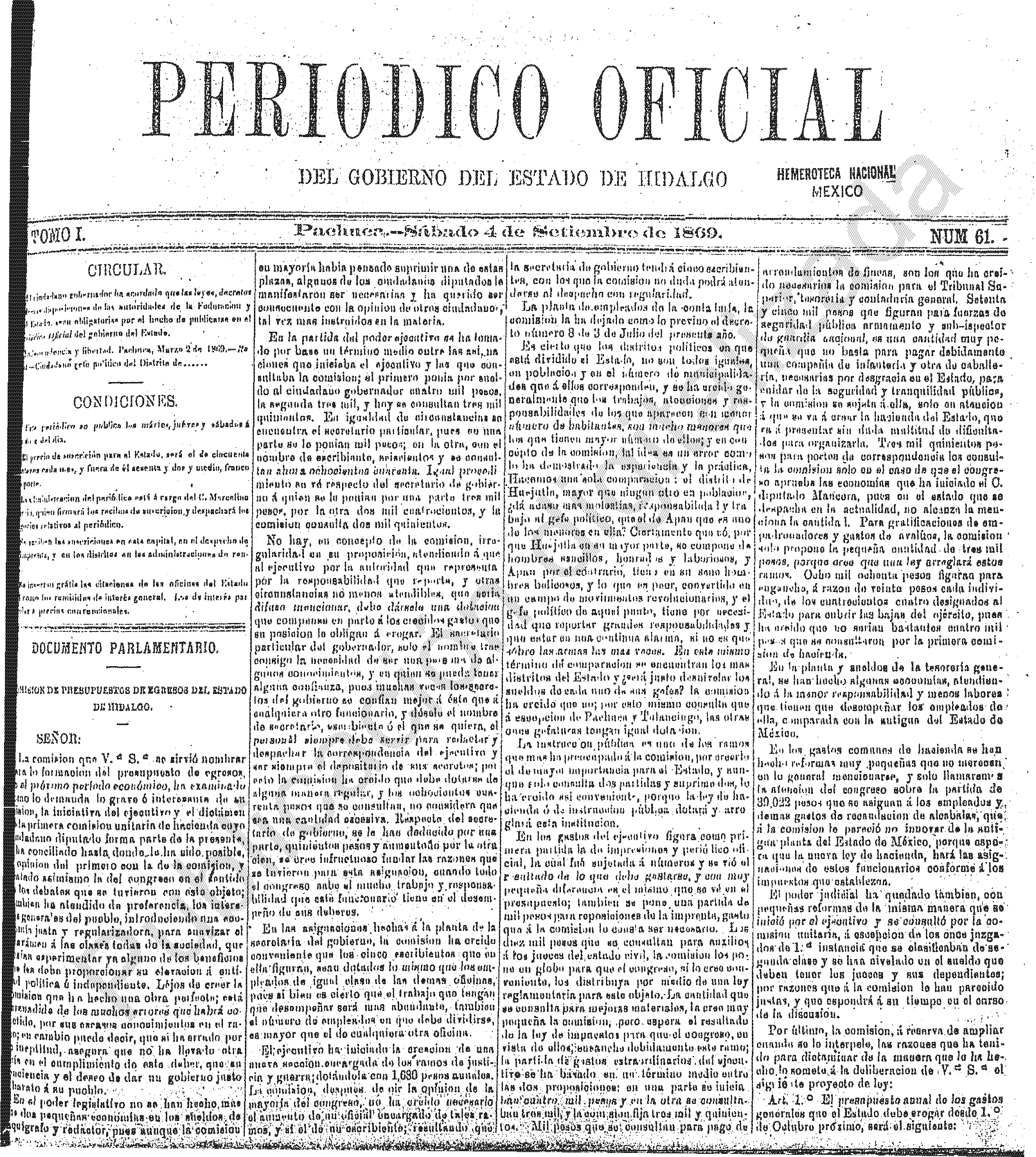 Descargar Periódico Oficial Ordinario 0 del 04 de septiembre de 1869El portal web del Periódico Oficial del Estado de hidalgo es el único medio de difusión oficial del Gobierno del Estado de Hidalgo