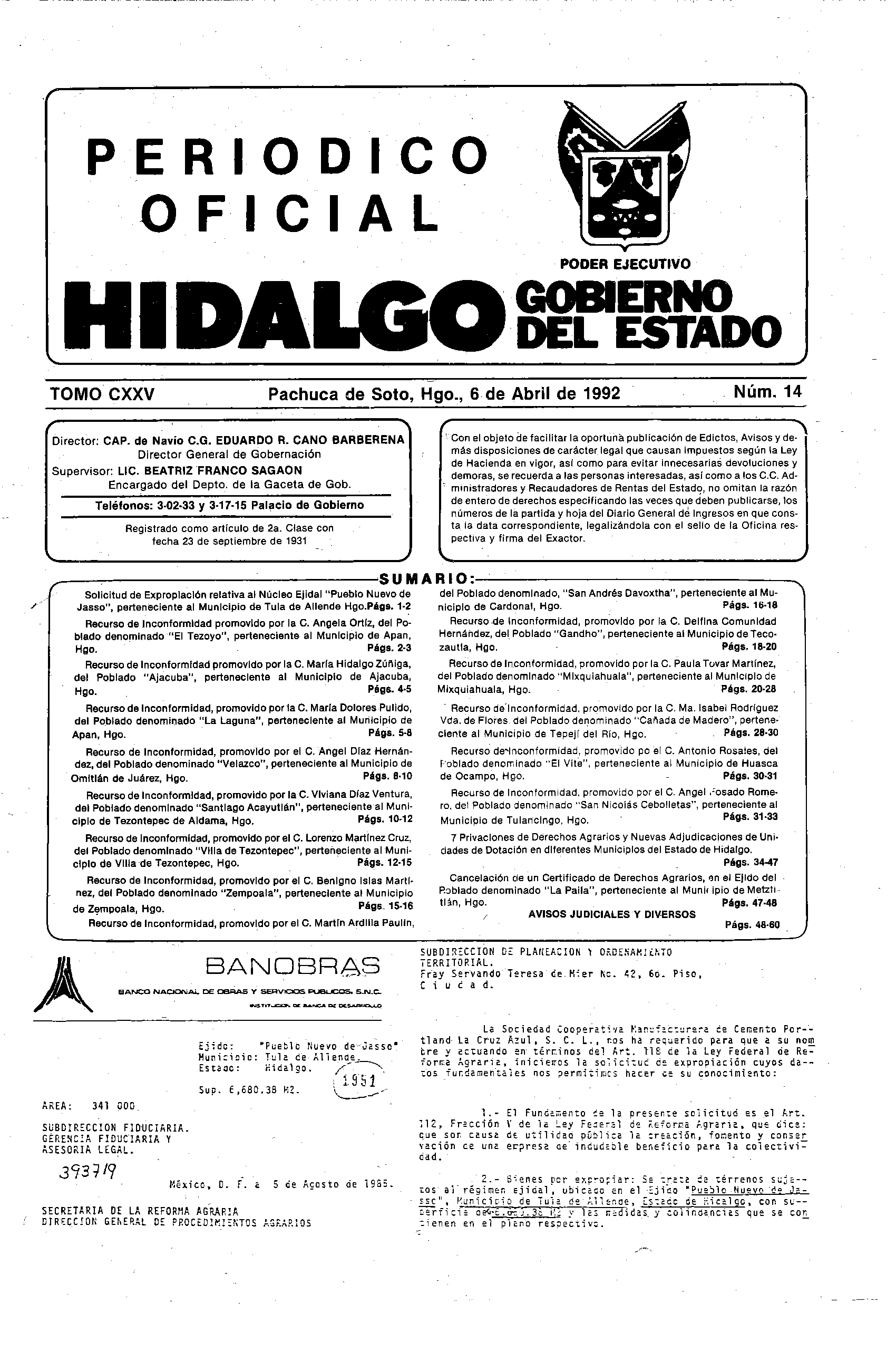 Periódico Oficial Ordinario 0 del 06 de abril de 1992