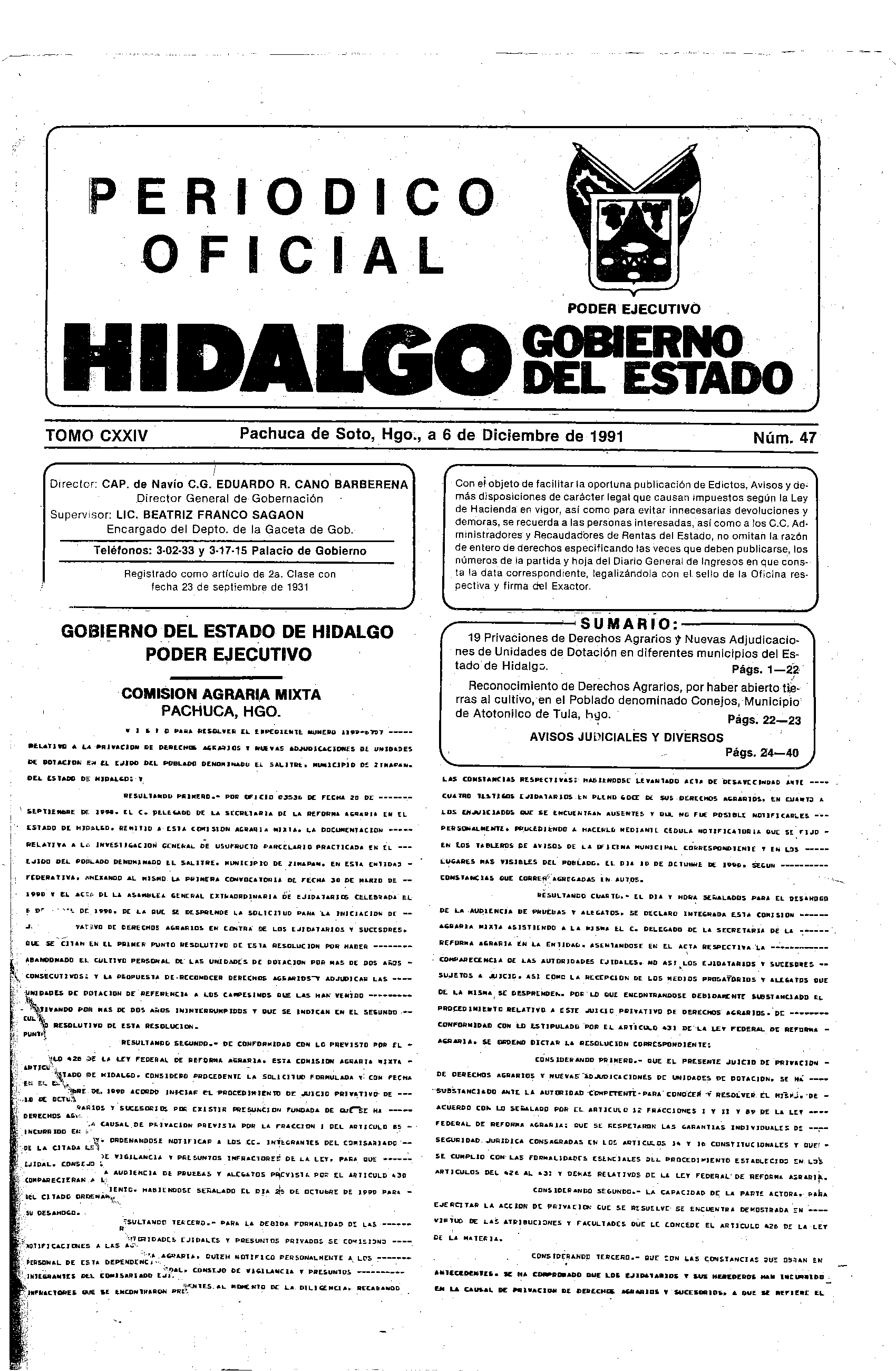 Edición: Ordinario 0 Número: 47 Páginas: 40 |
