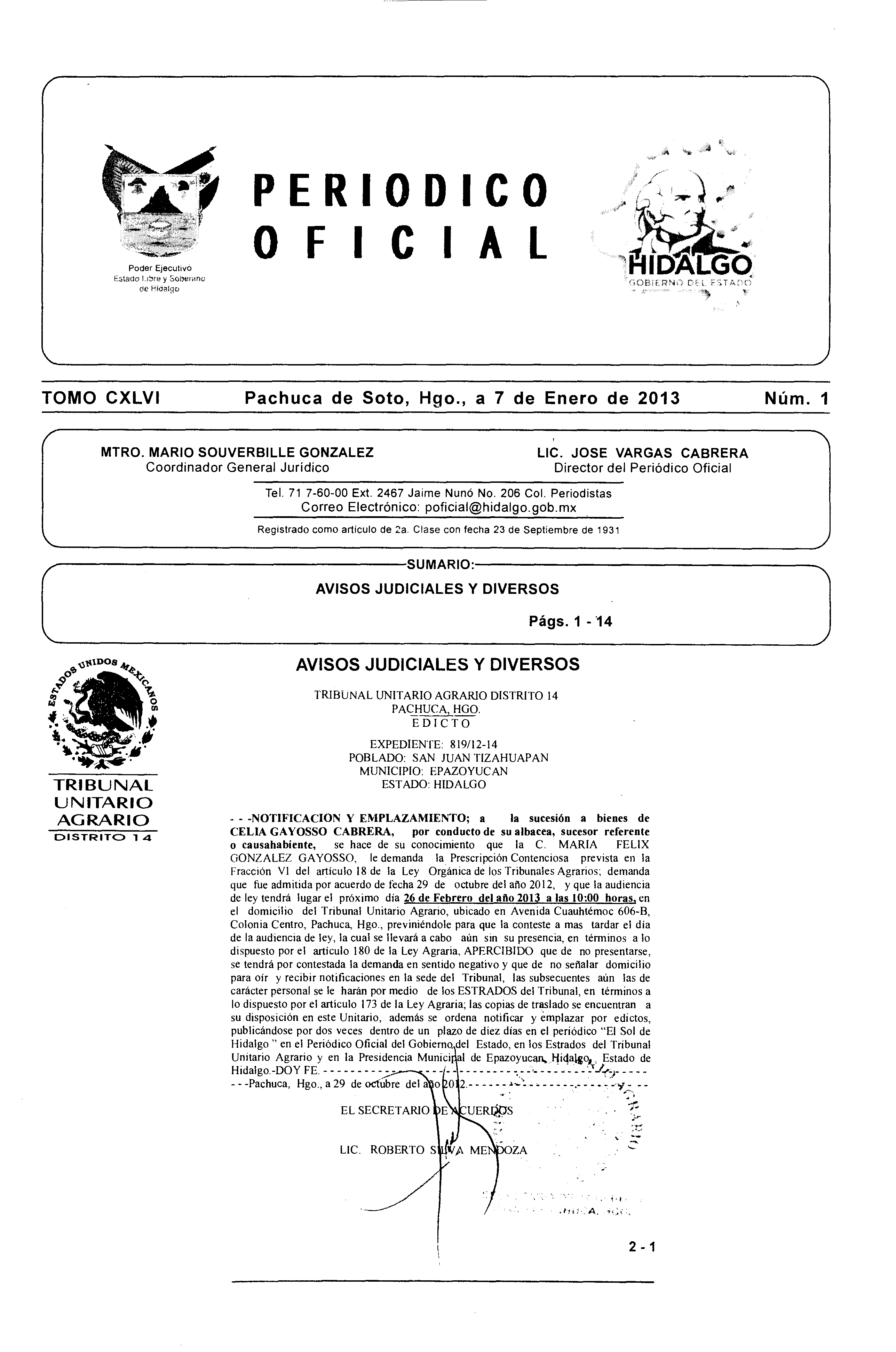 Descargar Periódico Oficial Ordinario 0 del 07 de enero de 2013