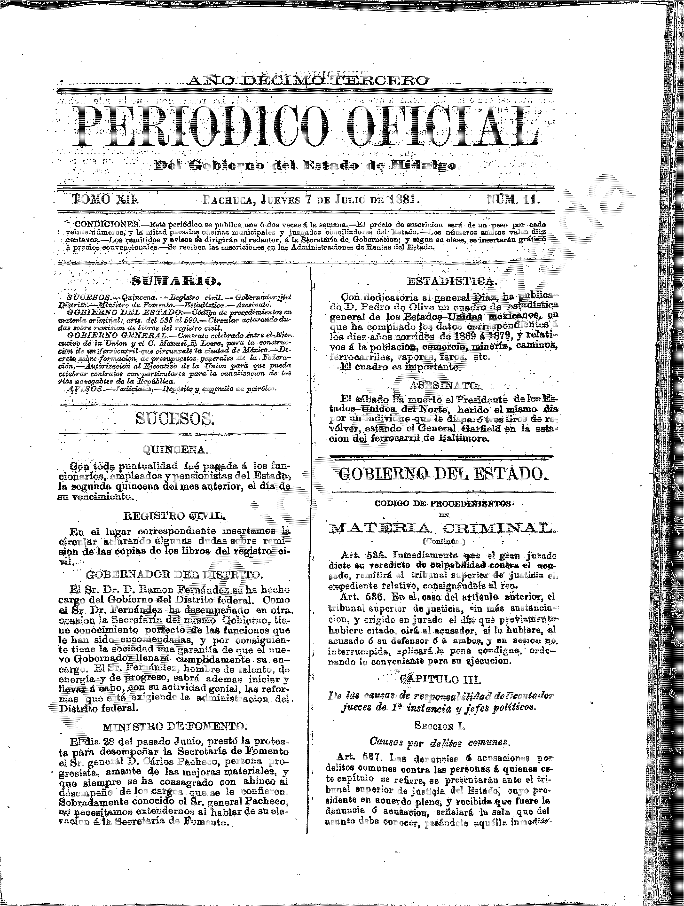 Descargar Periódico Oficial Ordinario 0 del 07 de julio de 1881El portal web del Periódico Oficial del Estado de hidalgo es el único medio de difusión oficial del Gobierno del Estado de Hidalgo