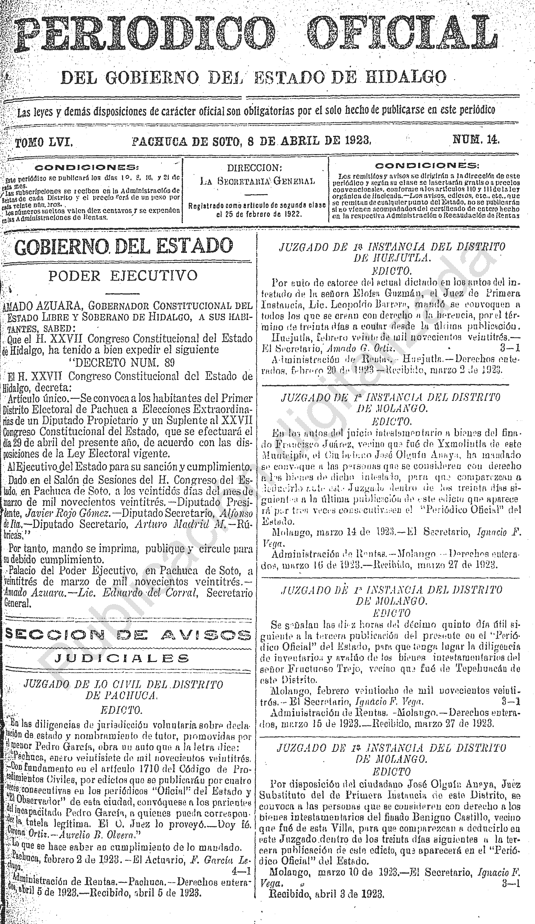 Descargar Periódico Oficial Ordinario 0 del 08 de abril de 1923