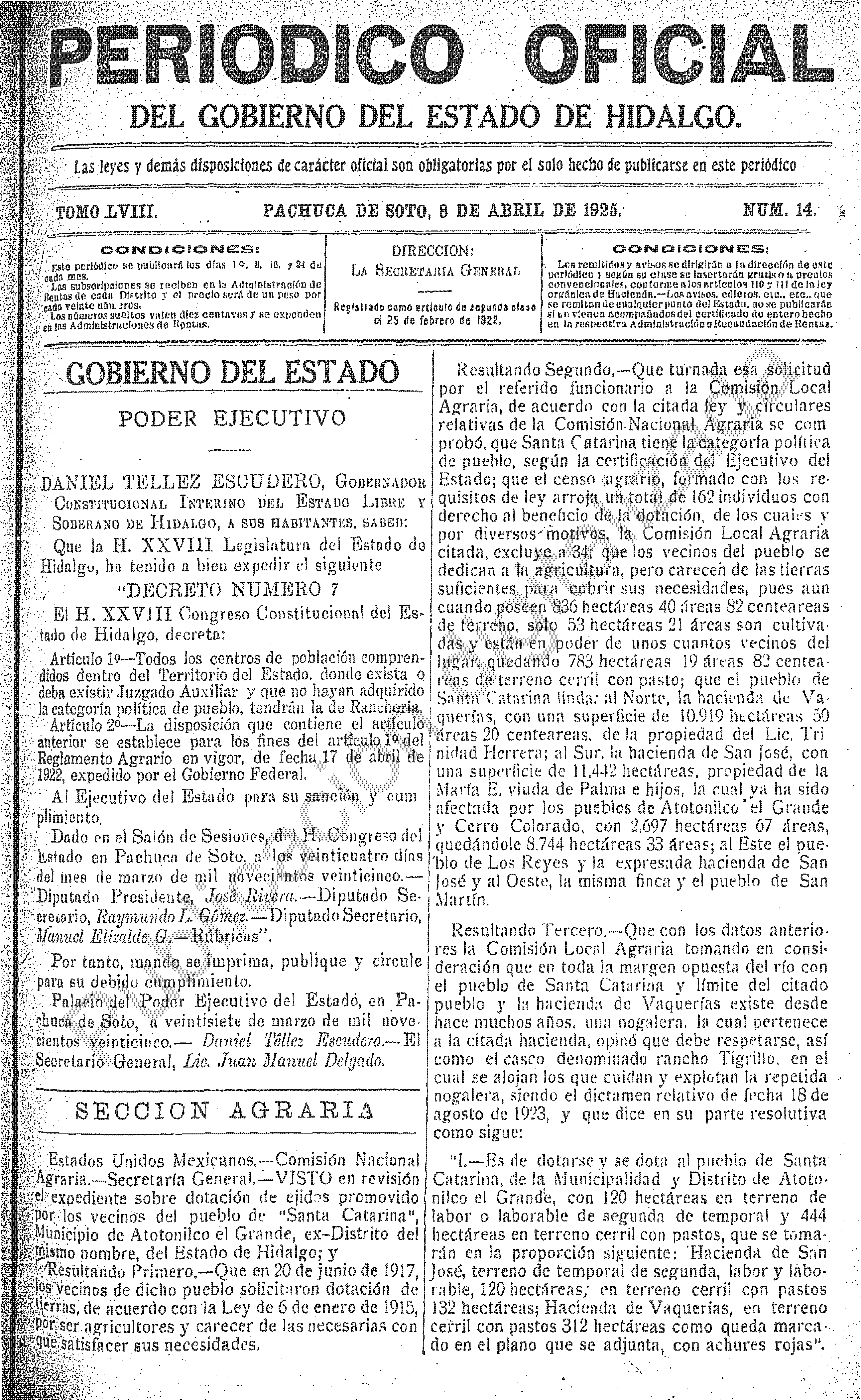Descargar Periódico Oficial Ordinario 0 del 08 de abril de 1925