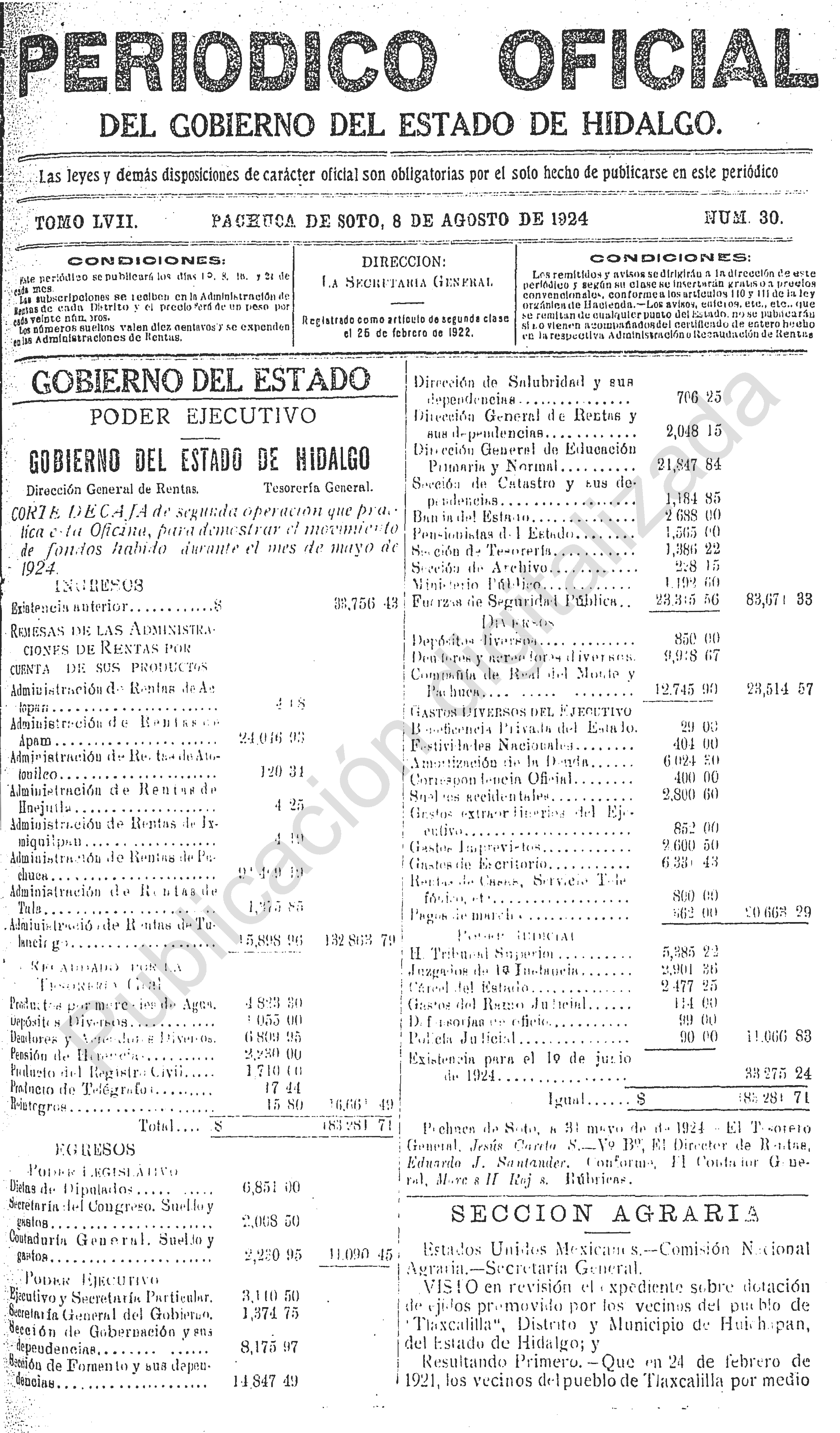 Descargar Periódico Oficial Ordinario 0 del 08 de agosto de 1924