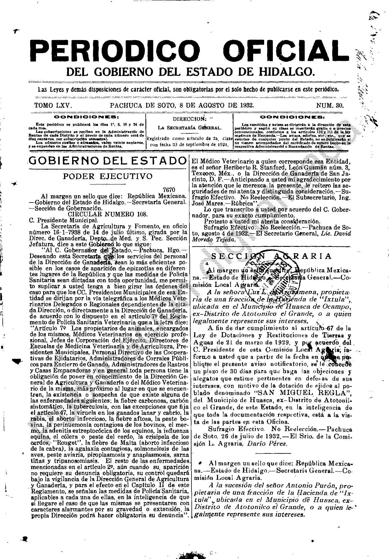 Descargar Periódico Oficial Ordinario 0 del 08 de agosto de 1932