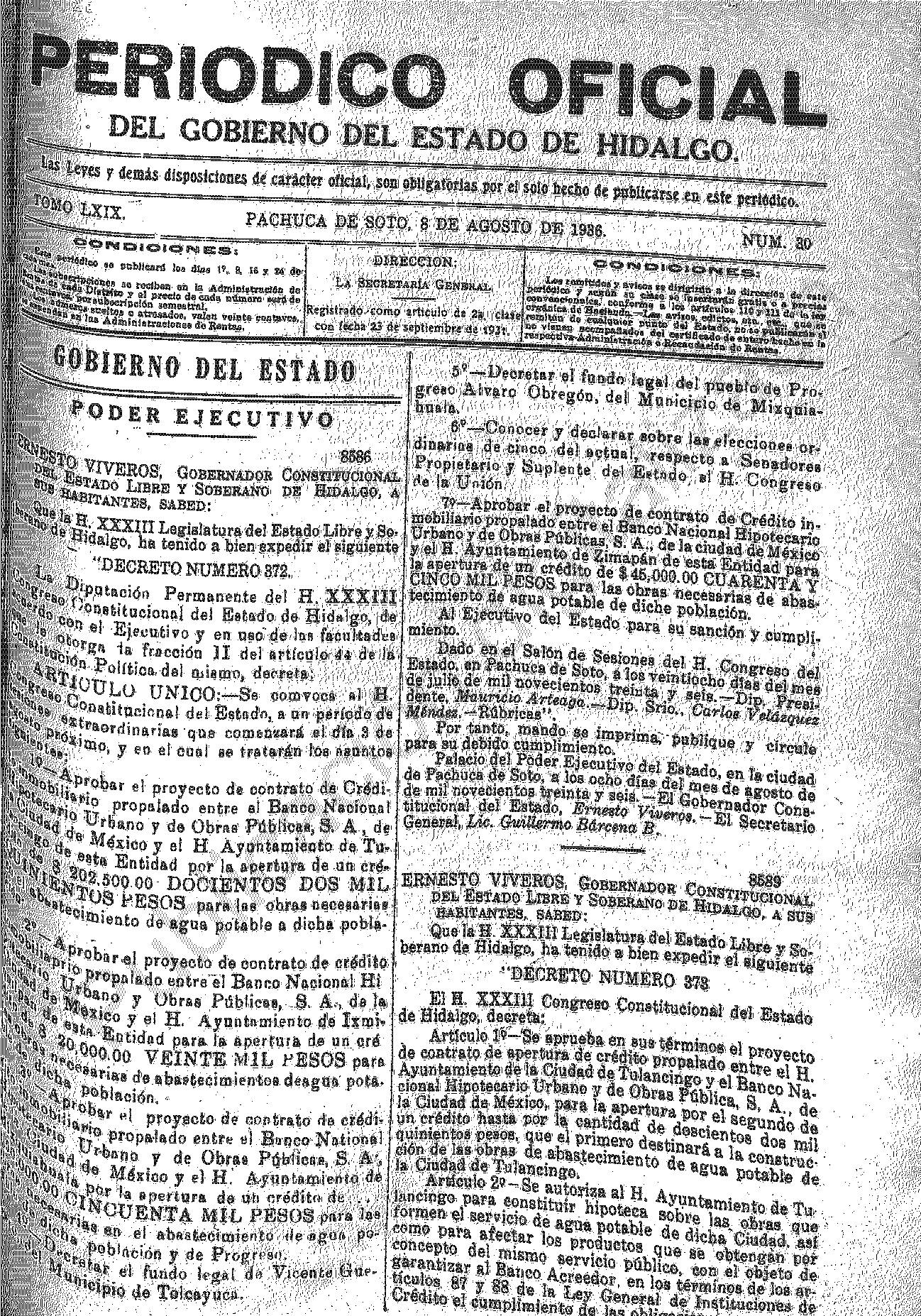 - 8589.- Decreto Número 373, Se aprueba en sus términos el proyecto de contrato de apertura de crédito propalado entre el H. Ayuntamiento de la Ciudad de Tulancingo y el Banco Nacional Hipotecario Urbano y de Obras Públicas, S. A., de la Ciudad de México.
