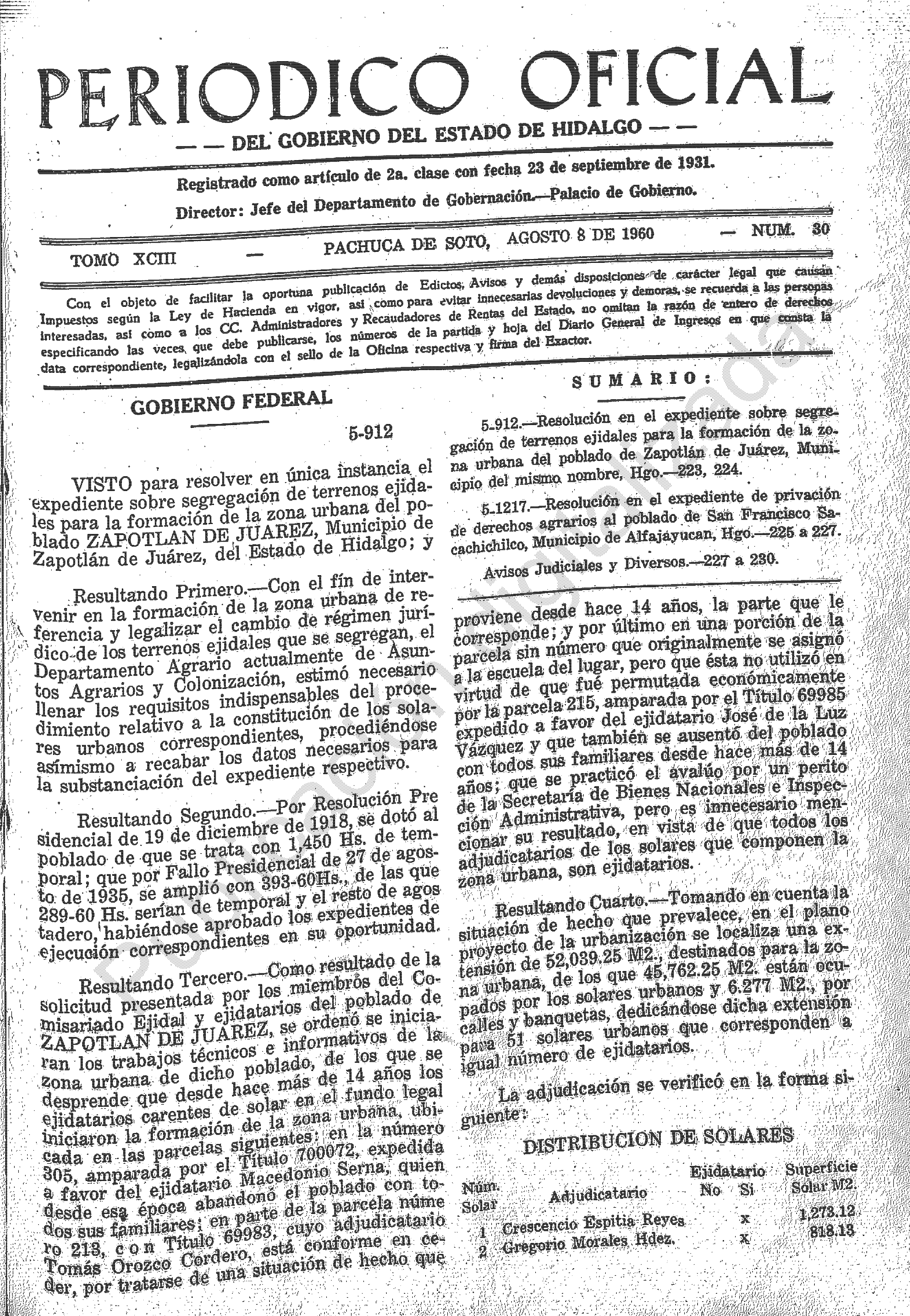 Descargar Periódico Oficial Ordinario 0 del 08 de agosto de 1960