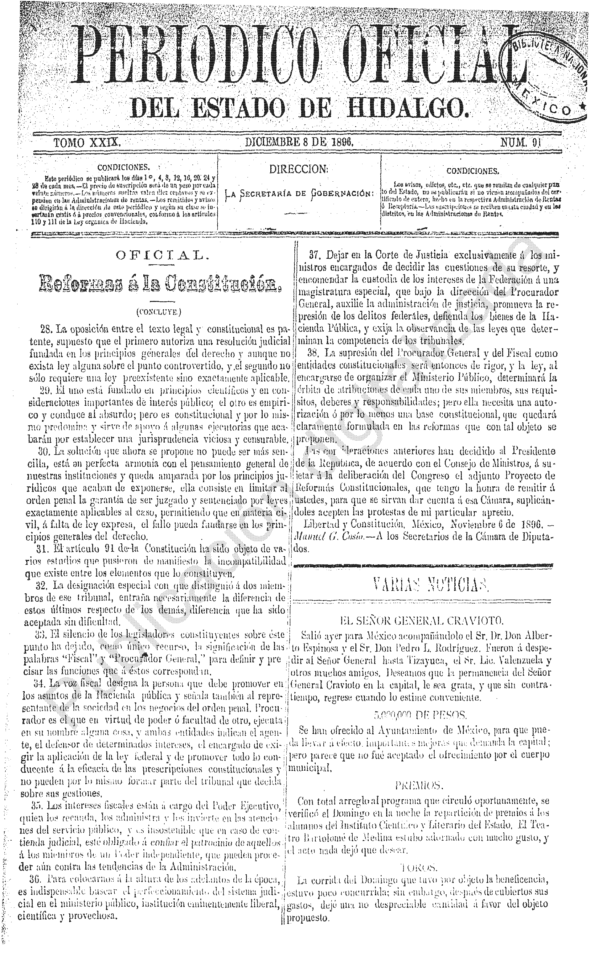 Periódico Oficial Ordinario 0 del 08 de diciembre de 1896