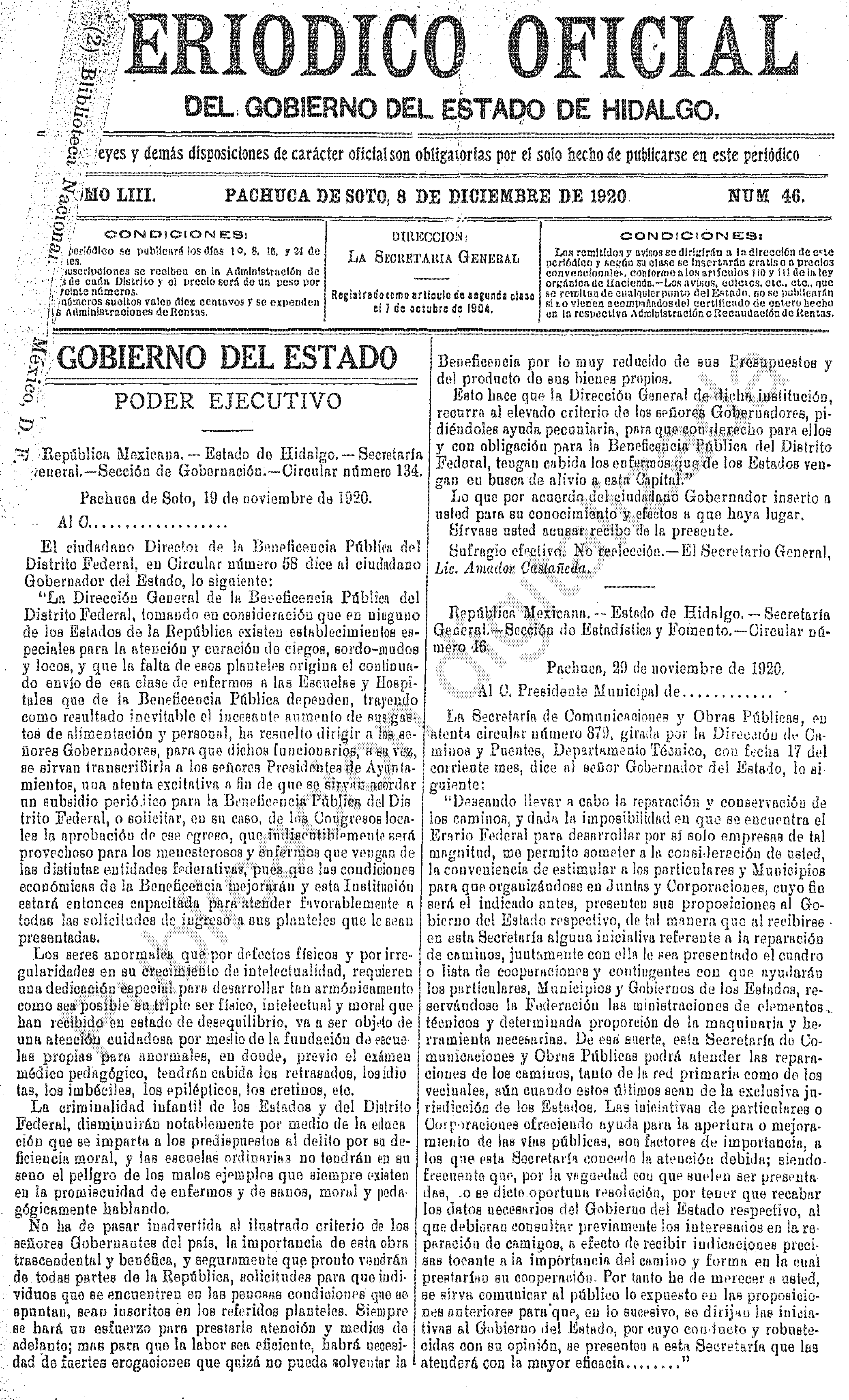 Descargar Periódico Oficial Ordinario 0 del 08 de diciembre de 1920El portal web del Periódico Oficial del Estado de hidalgo es el único medio de difusión oficial del Gobierno del Estado de Hidalgo