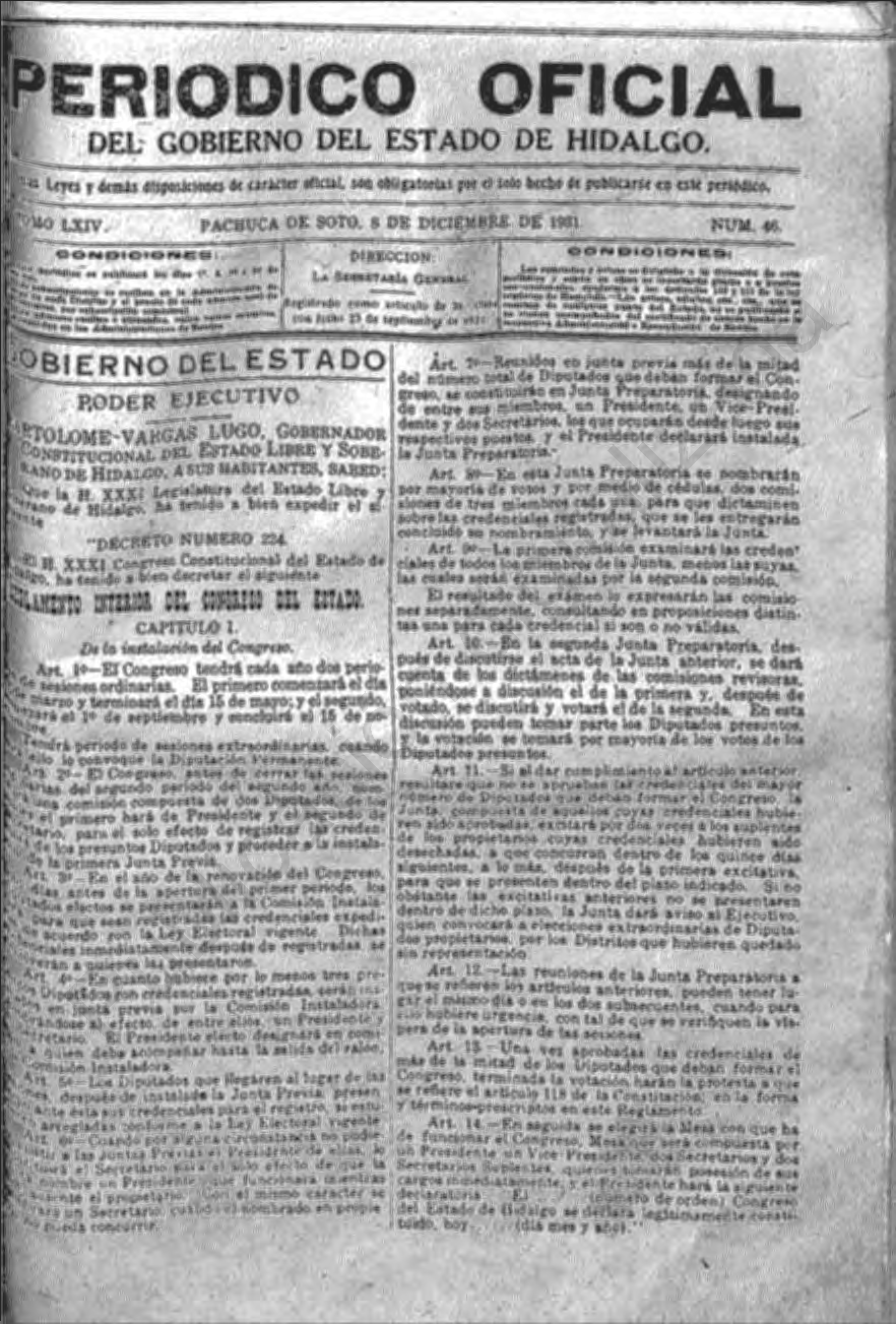 Órgano informativo del Estado Libre y Soberano de Hidalgo