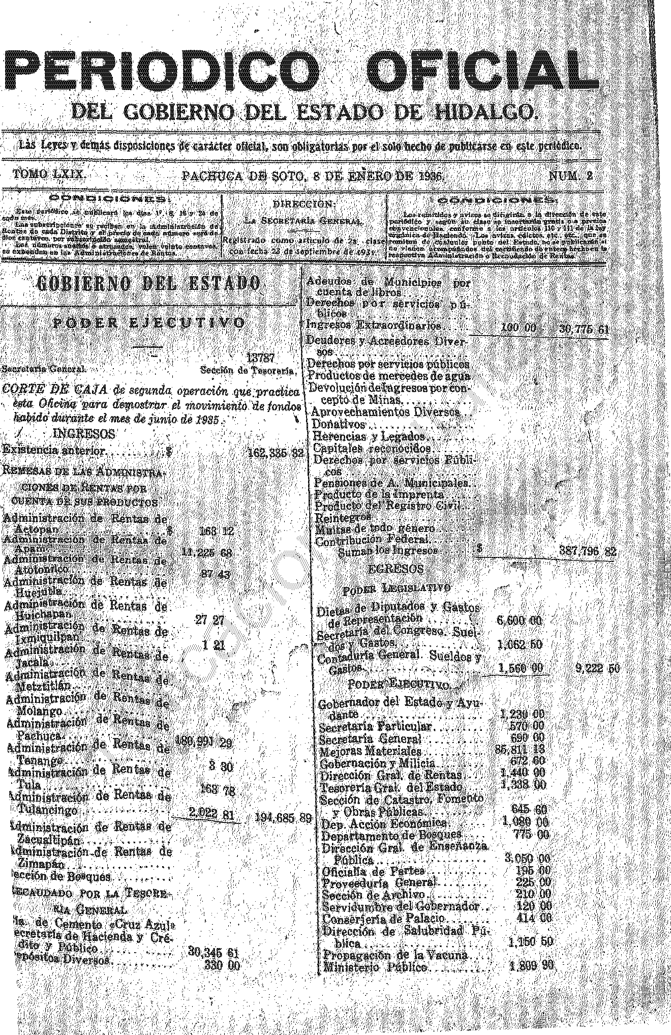 Descargar Periódico Oficial Ordinario 0 del 08 de enero de 1936