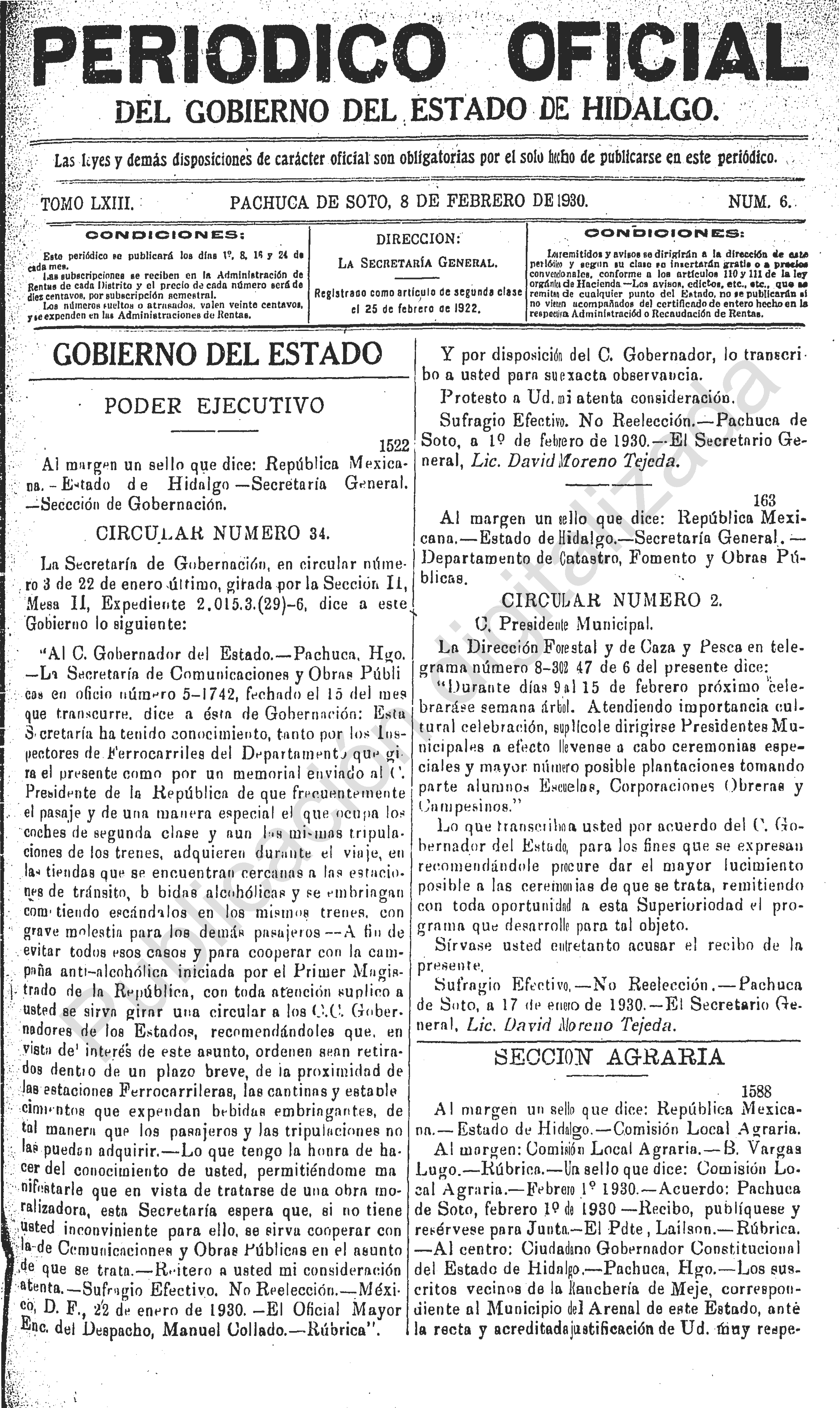 Descargar Periódico Oficial Ordinario 0 del 08 de febrero de 1930