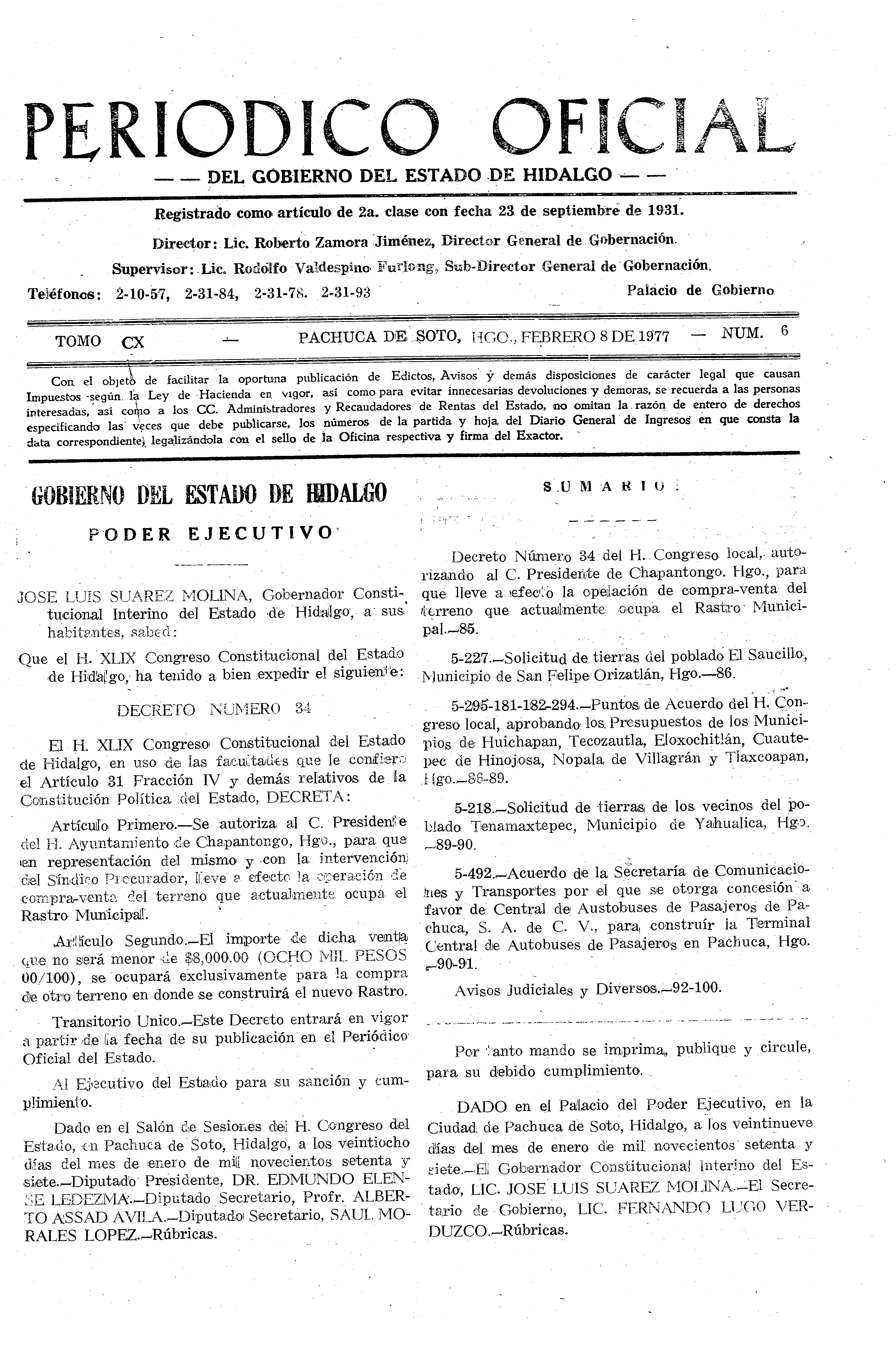 Periódico Oficial Ordinario 0 del 08 de febrero de 1977