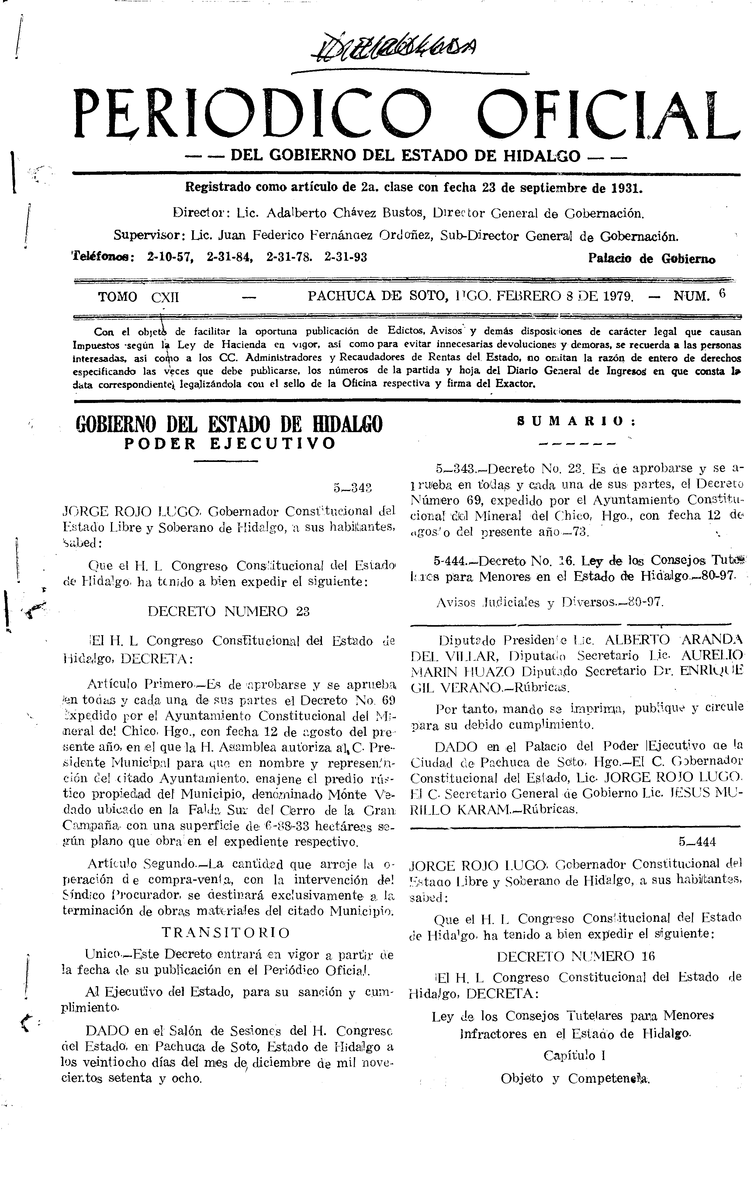 Descargar Periódico Oficial Ordinario 0 del 08 de febrero de 1979