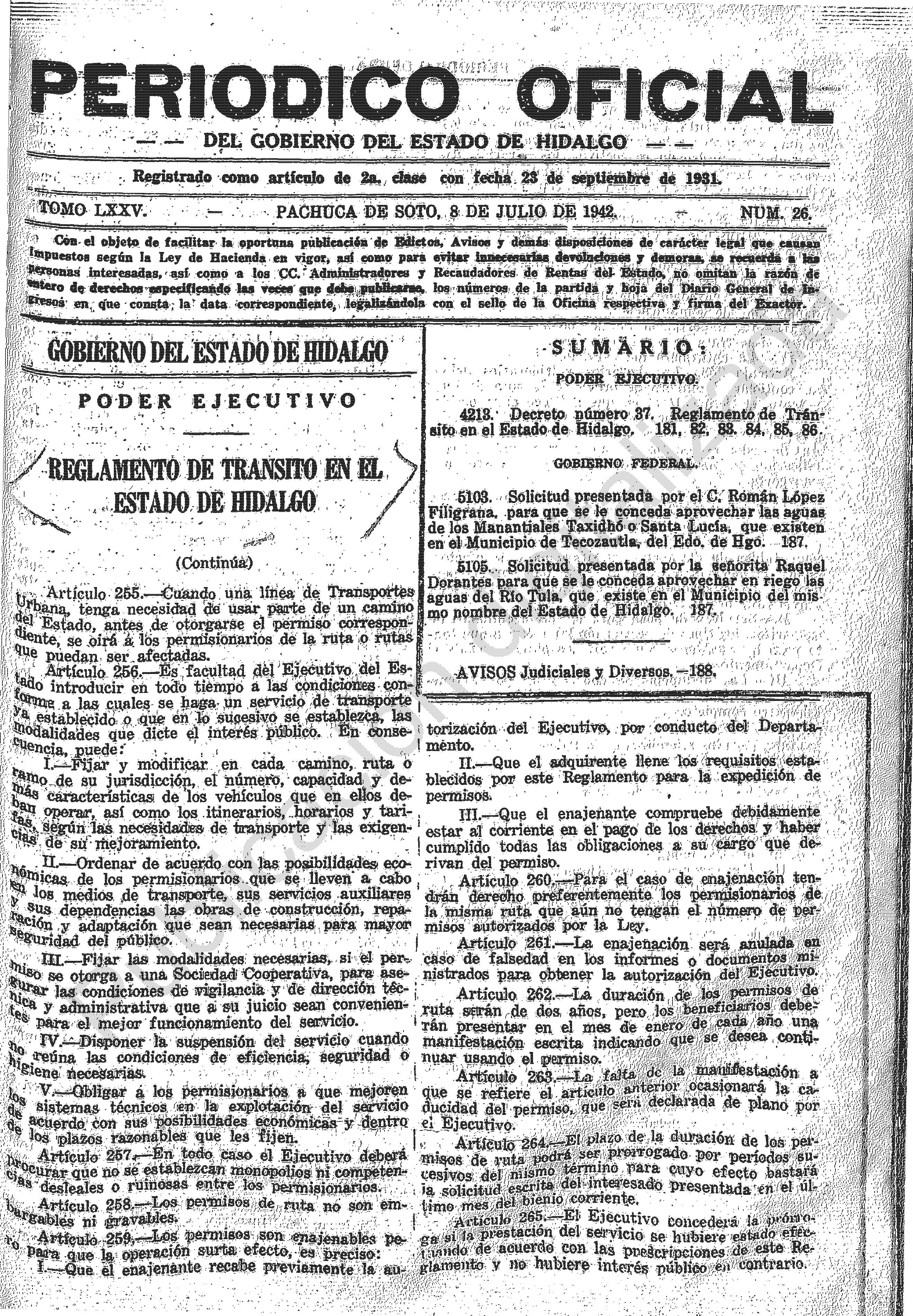 Descargar Periódico Oficial Ordinario 0 del 08 de julio de 1942