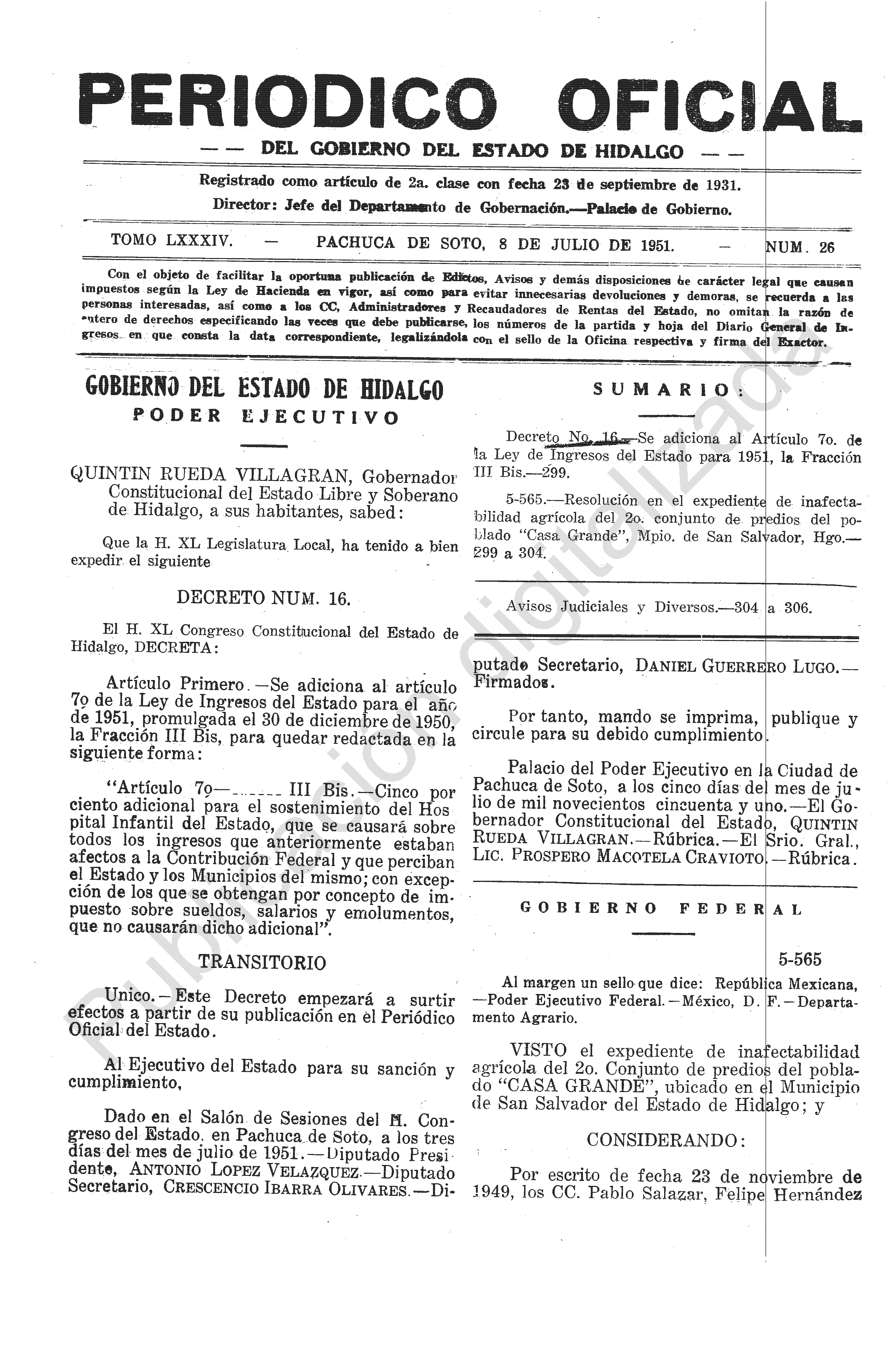 Descargar Periódico Oficial Ordinario 0 del 08 de julio de 1951