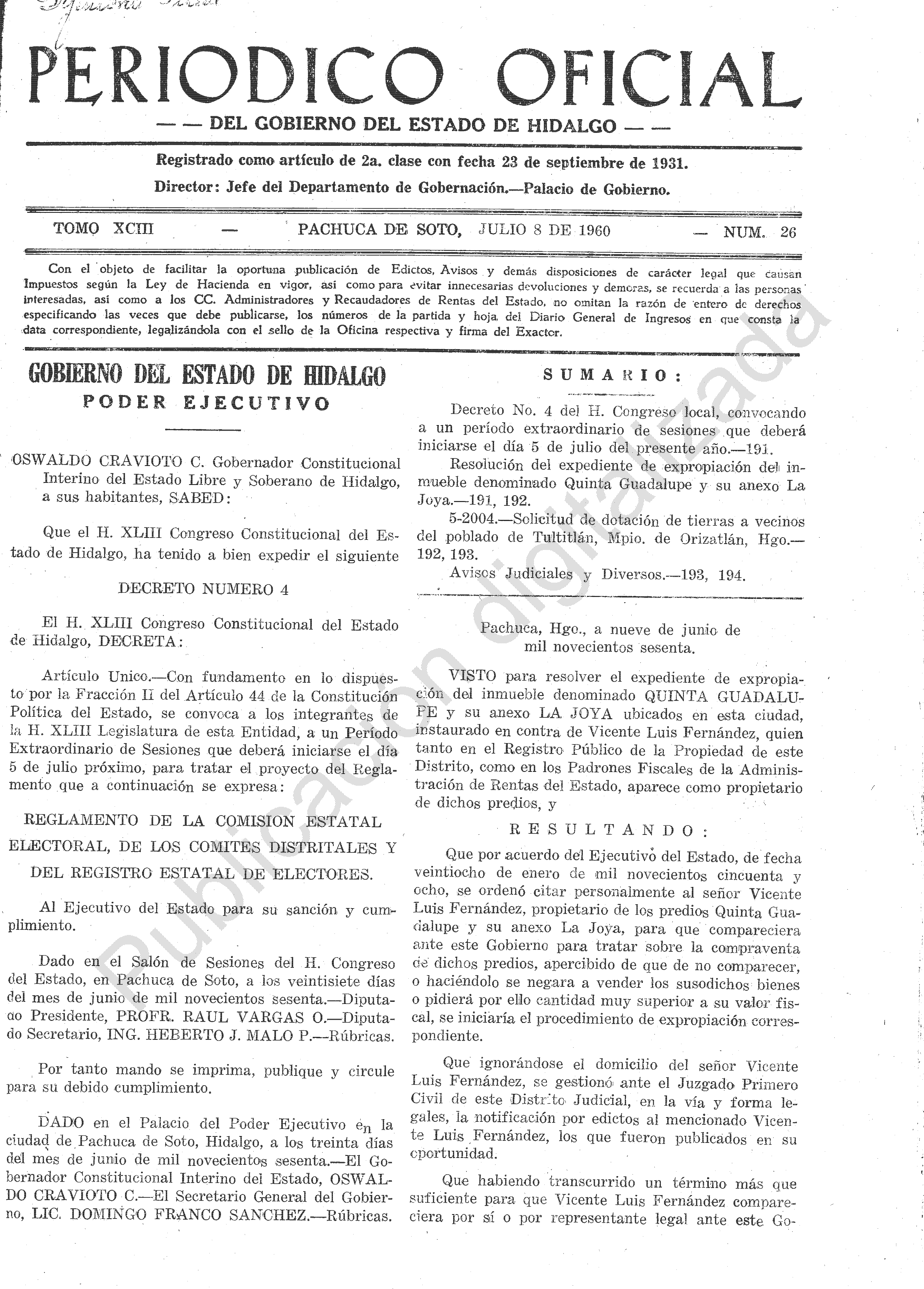 Descargar Periódico Oficial Ordinario 0 del 08 de julio de 1960