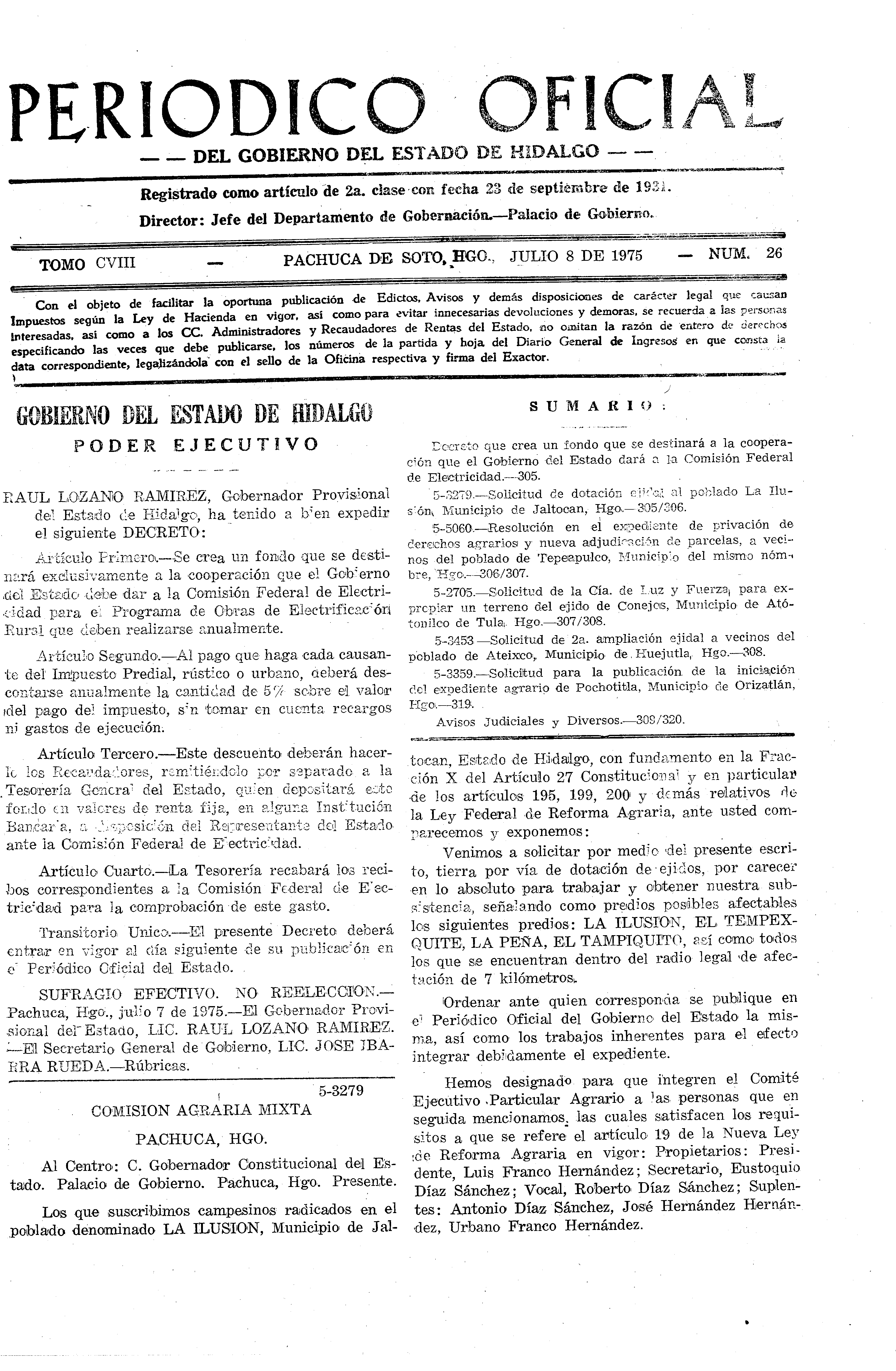 Descargar Periódico Oficial Ordinario 0 del 08 de julio de 1975