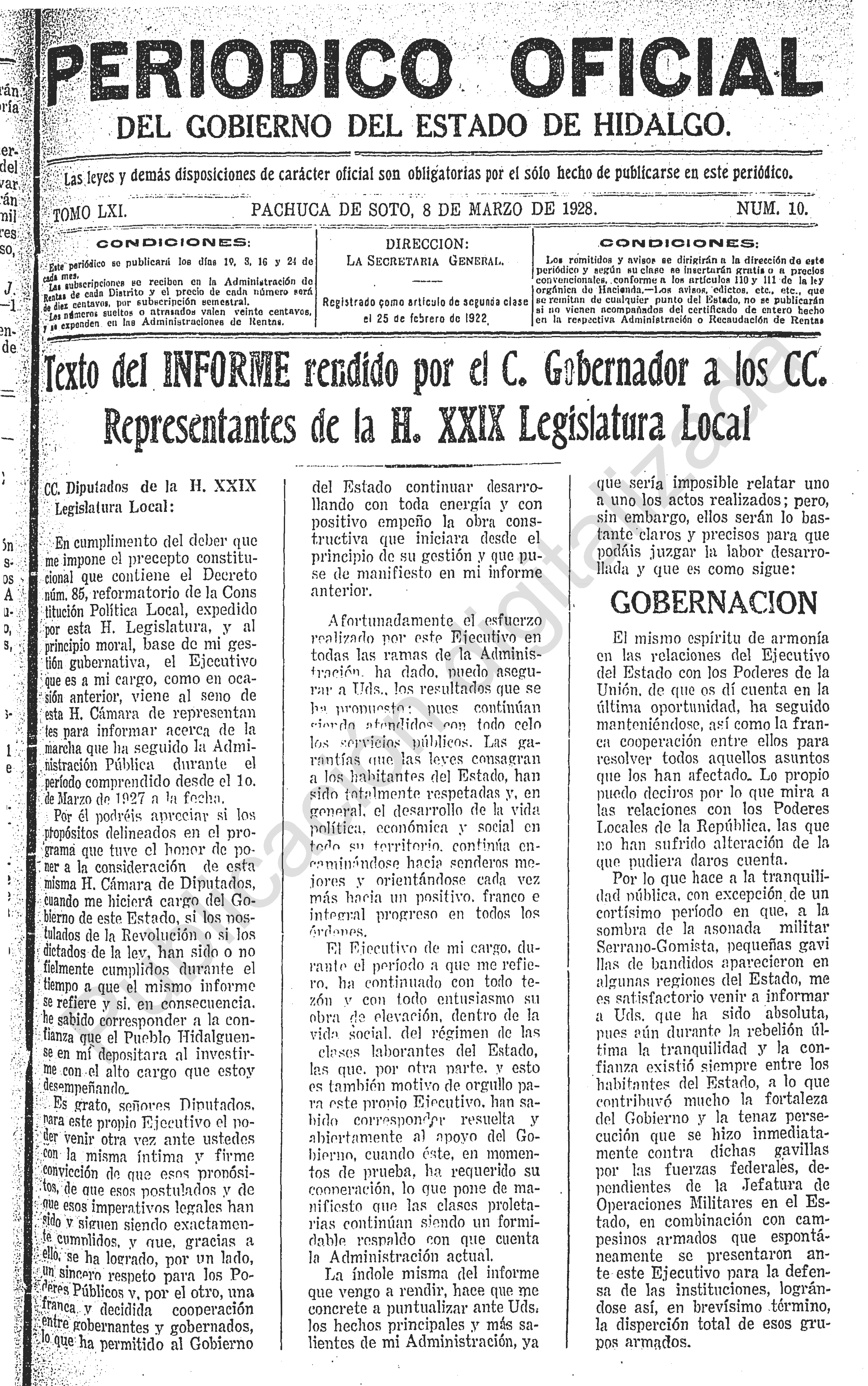 Descargar Periódico Oficial Ordinario 0 del 08 de marzo de 1928
