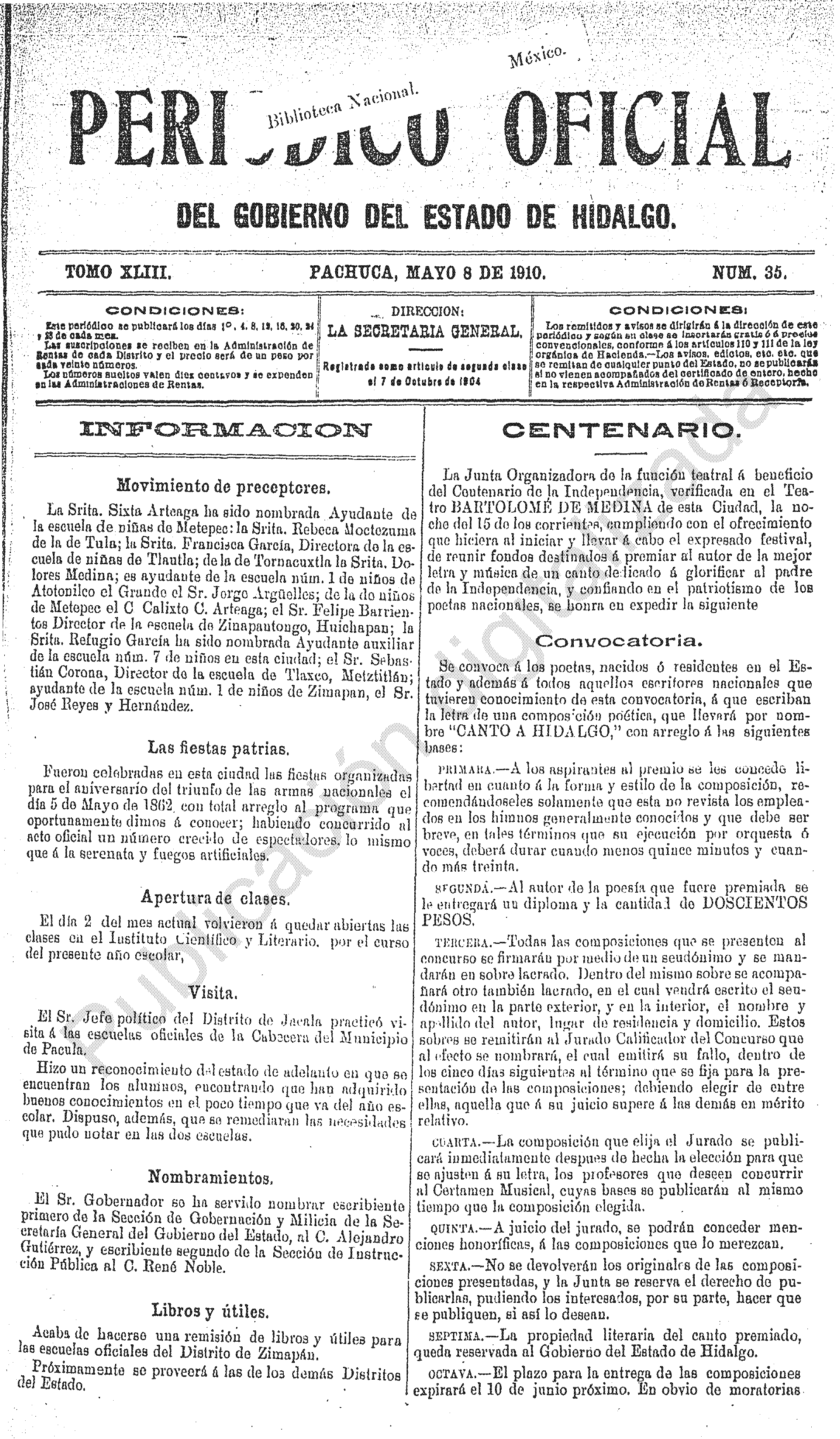 Periódico Oficial ordinario 0 del 08 de mayo de 1910