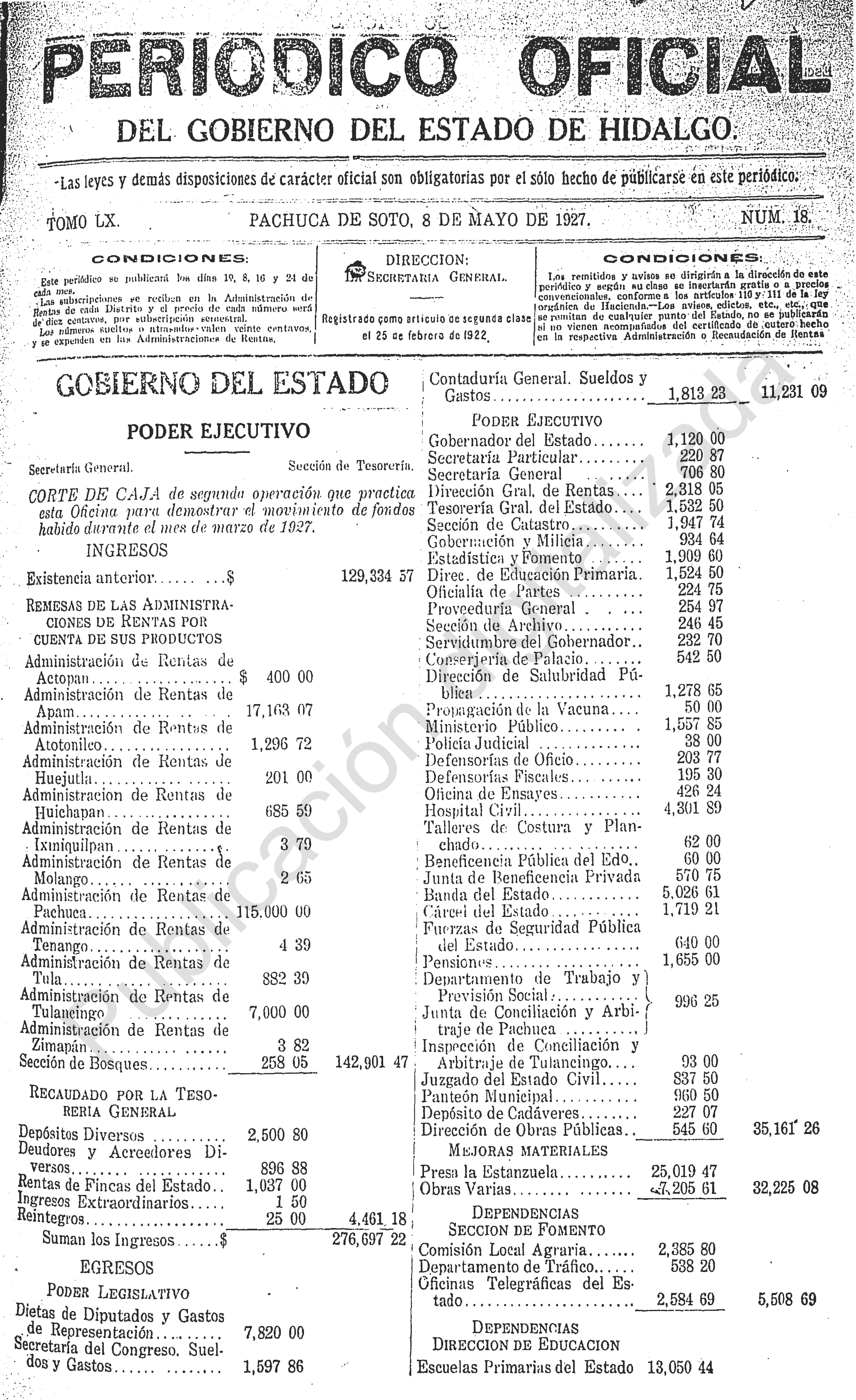 Descargar Periódico Oficial Ordinario 0 del 08 de mayo de 1927Tamaño 643.58 KB