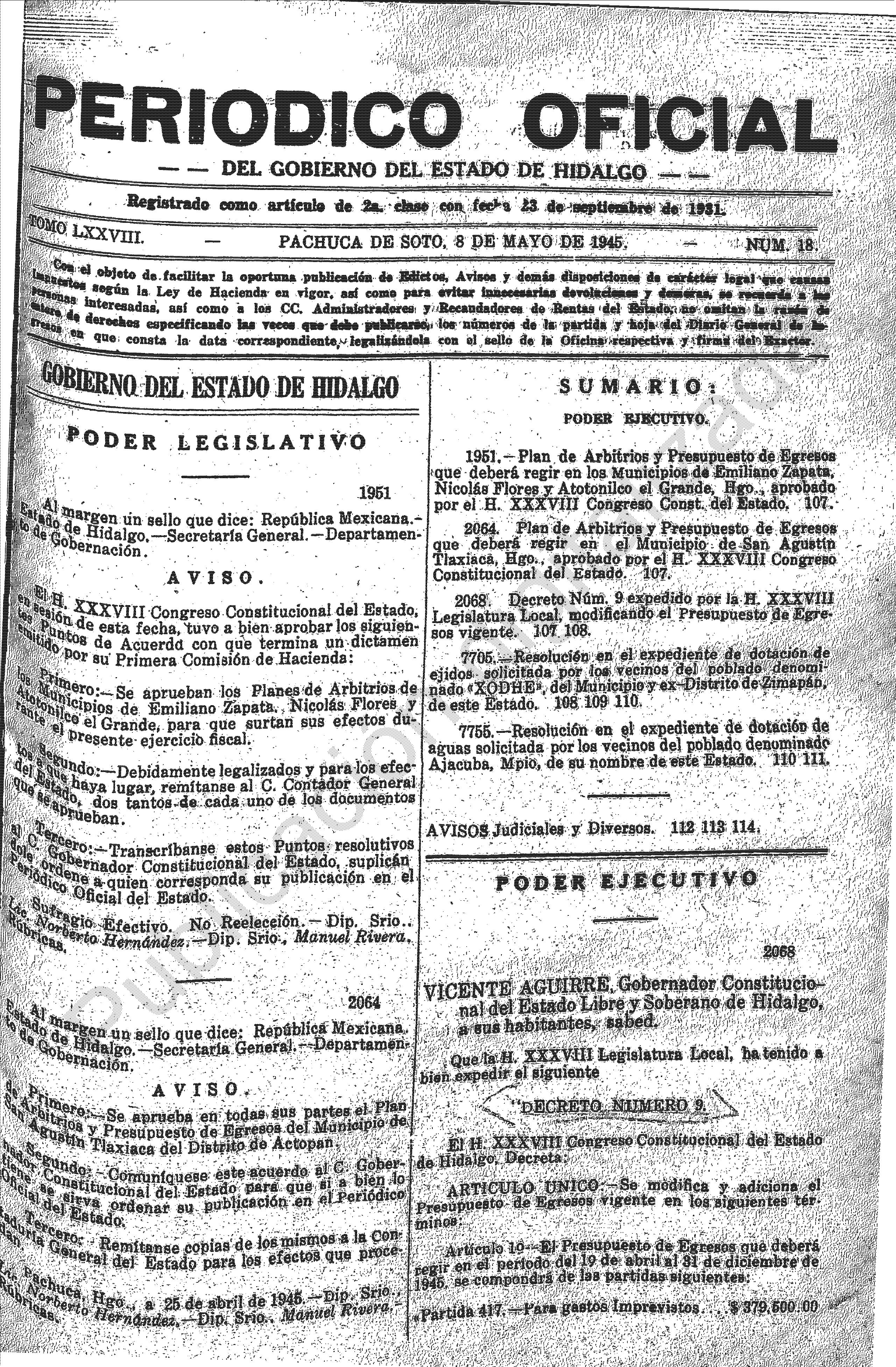 Descargar Periódico Oficial Ordinario 0 del 08 de mayo de 1945