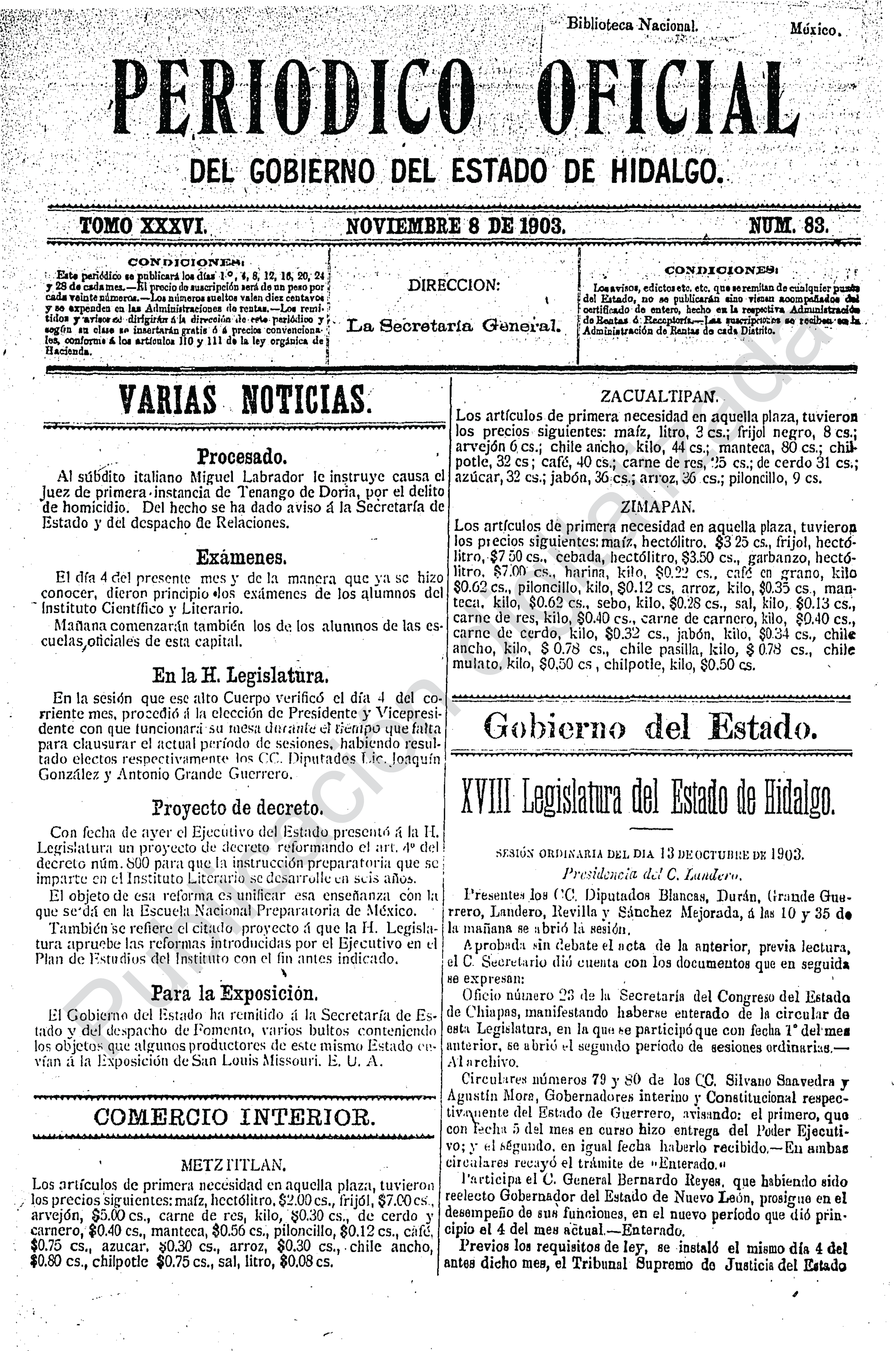 Descargar Periódico Oficial Ordinario 0 del 08 de noviembre de 1903Tamaño 4.50 MB