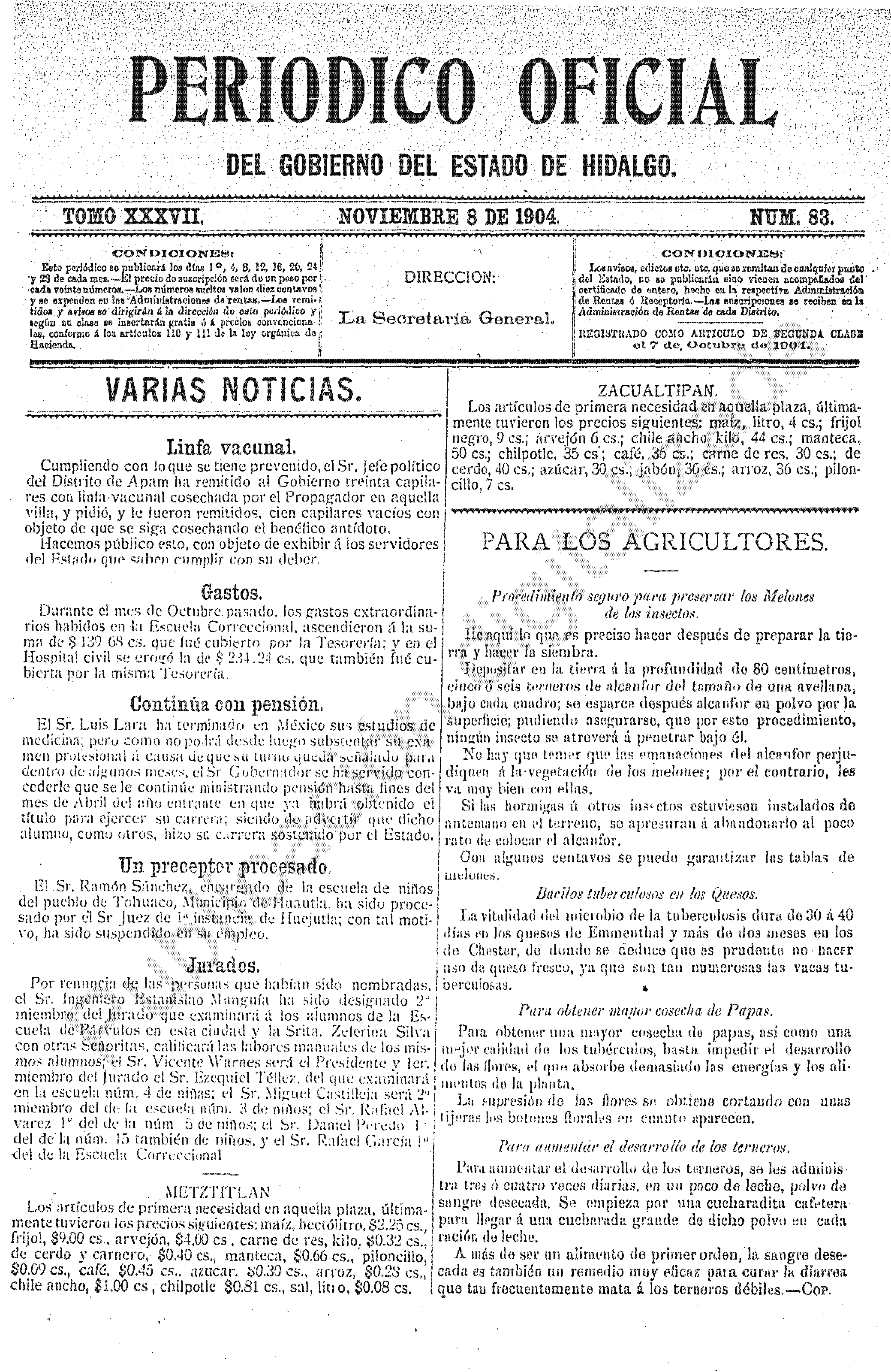 Descargar Periódico Oficial Ordinario 0 del 08 de noviembre de 1904Tamaño 1.11 MB