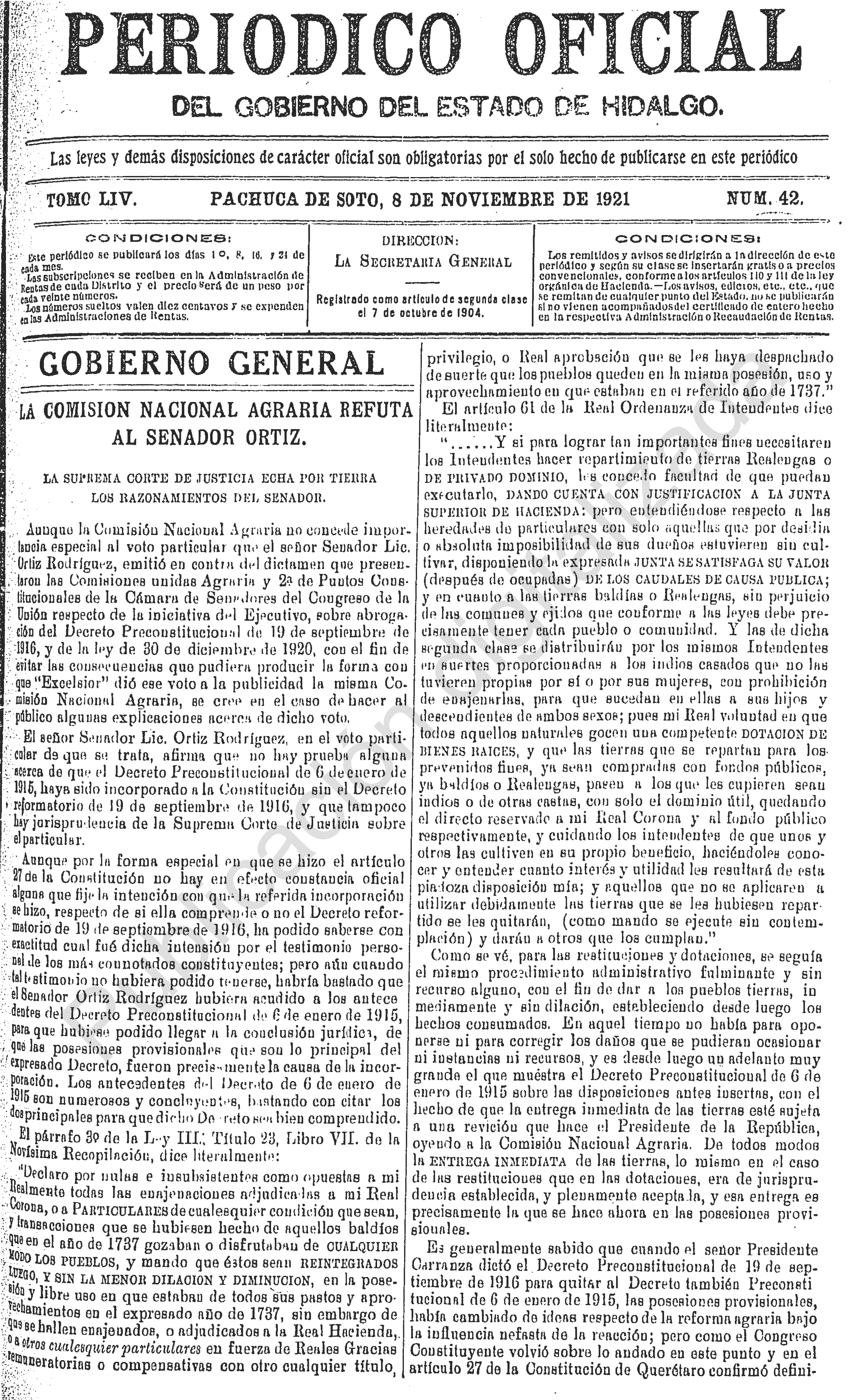 Descargar Periódico Oficial ordinario 0 del 08 de noviembre de 1921