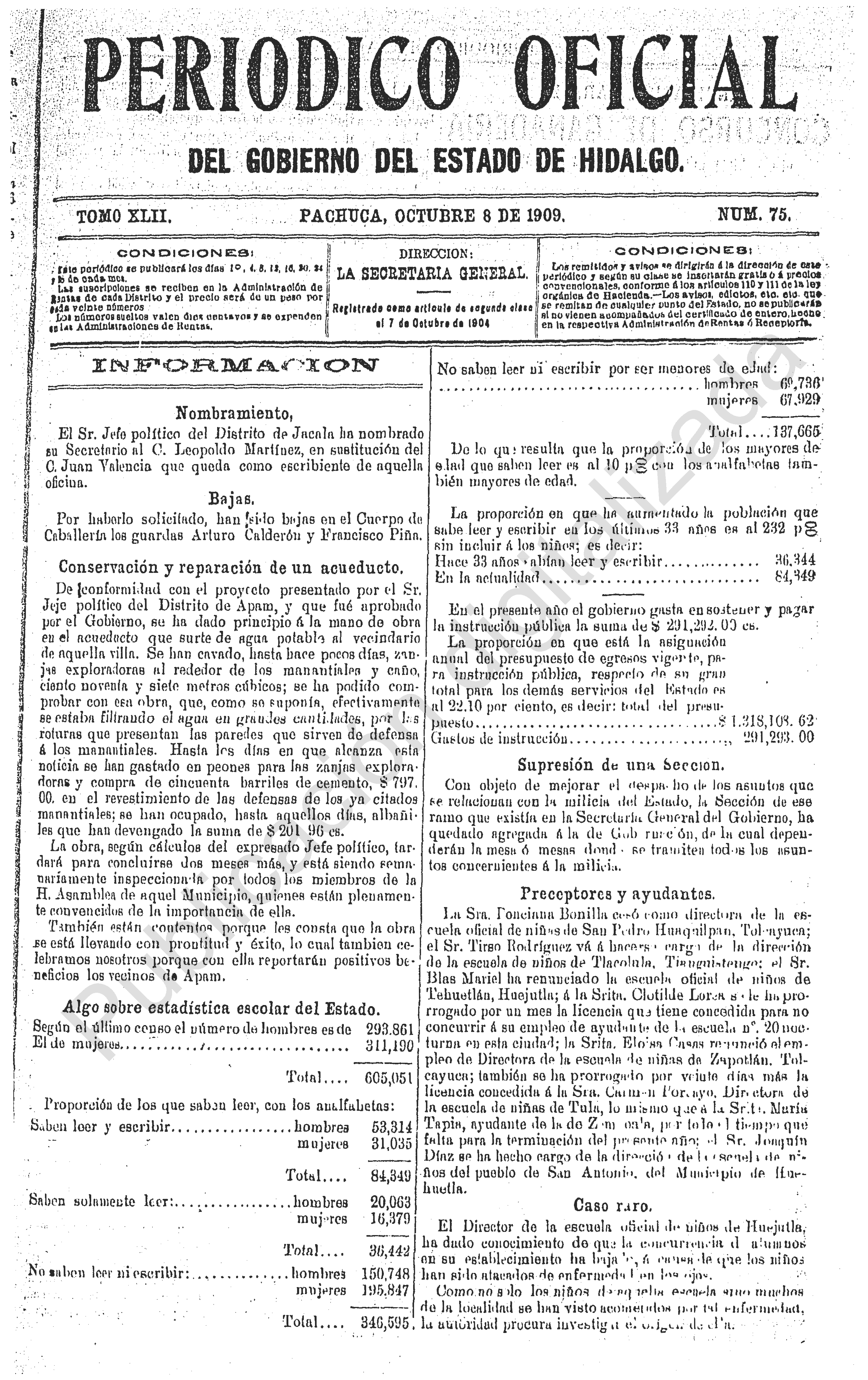 Descargar Periódico Oficial ordinario 0 del 08 de octubre de 1909Tamaño 954.31 KB