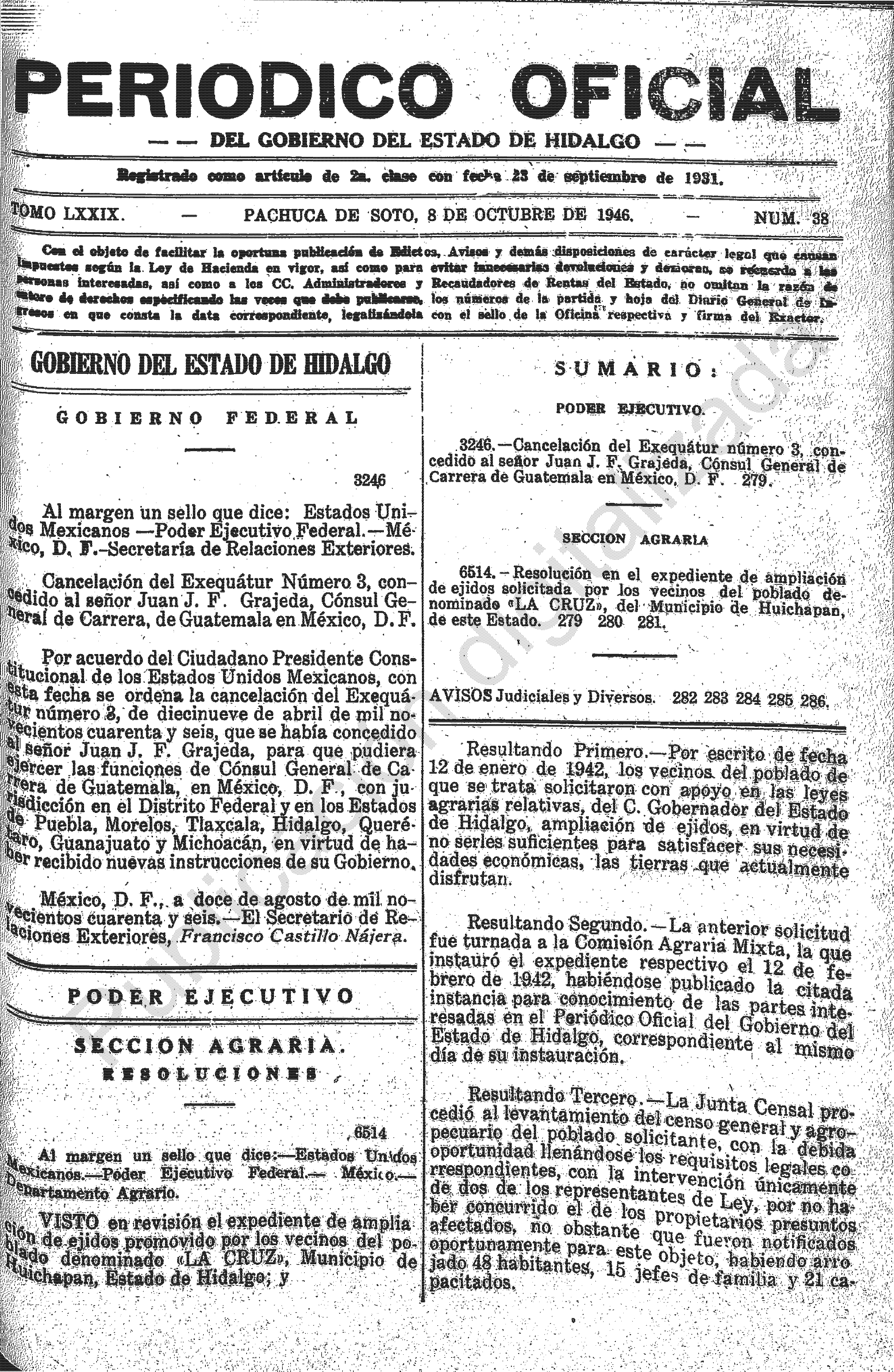 Descargar Periódico Oficial Ordinario 0 del 08 de octubre de 1946